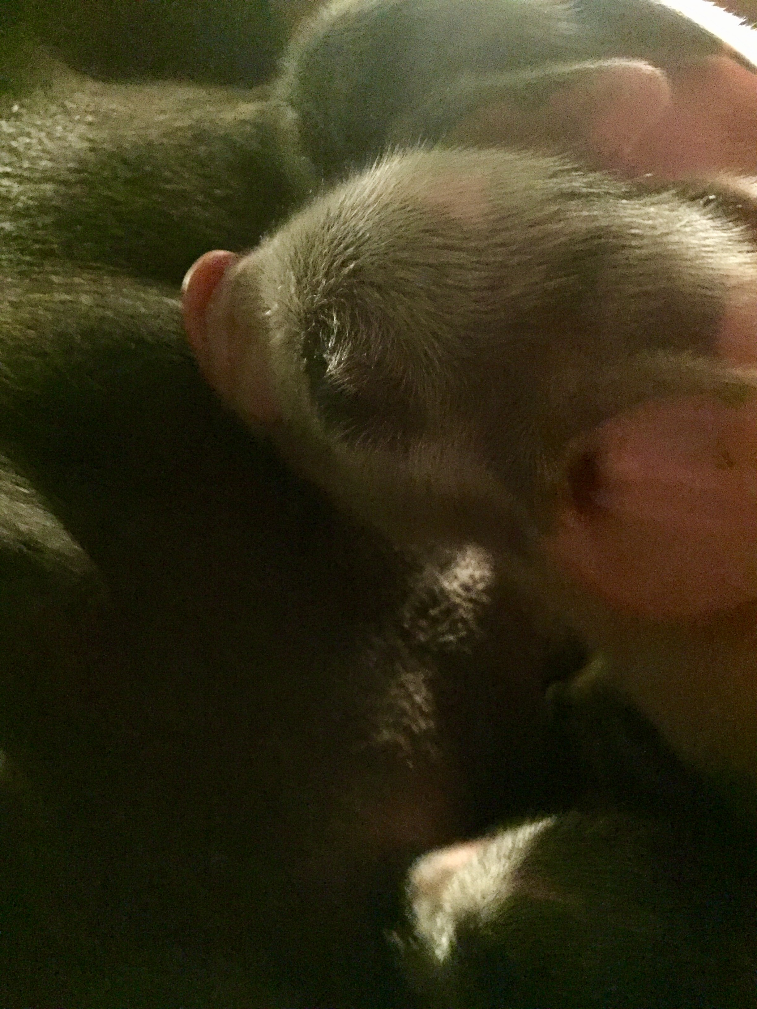A little about pigs: The sow’s average weight is 400 pounds, depending on age and nutrition status.  The piglets are born weighing 2-3 pounds each.  They look sweet and cuddly, but are born with 8 razor sharp teeth, also known as “needle teeth”.  We clip those teeth to prevent injury to the sow’s udder.  We also give iron injections to the piglets within the first 48 hours of birth, to prevent something called anemia (which is a low red blood cell level and can kill the piglets).  The piglets have difficulty maintaining a stable body temperature at birth, so we provide a heat lamp, warm hay, and confinement in the barn for the first 2-3 weeks of life.