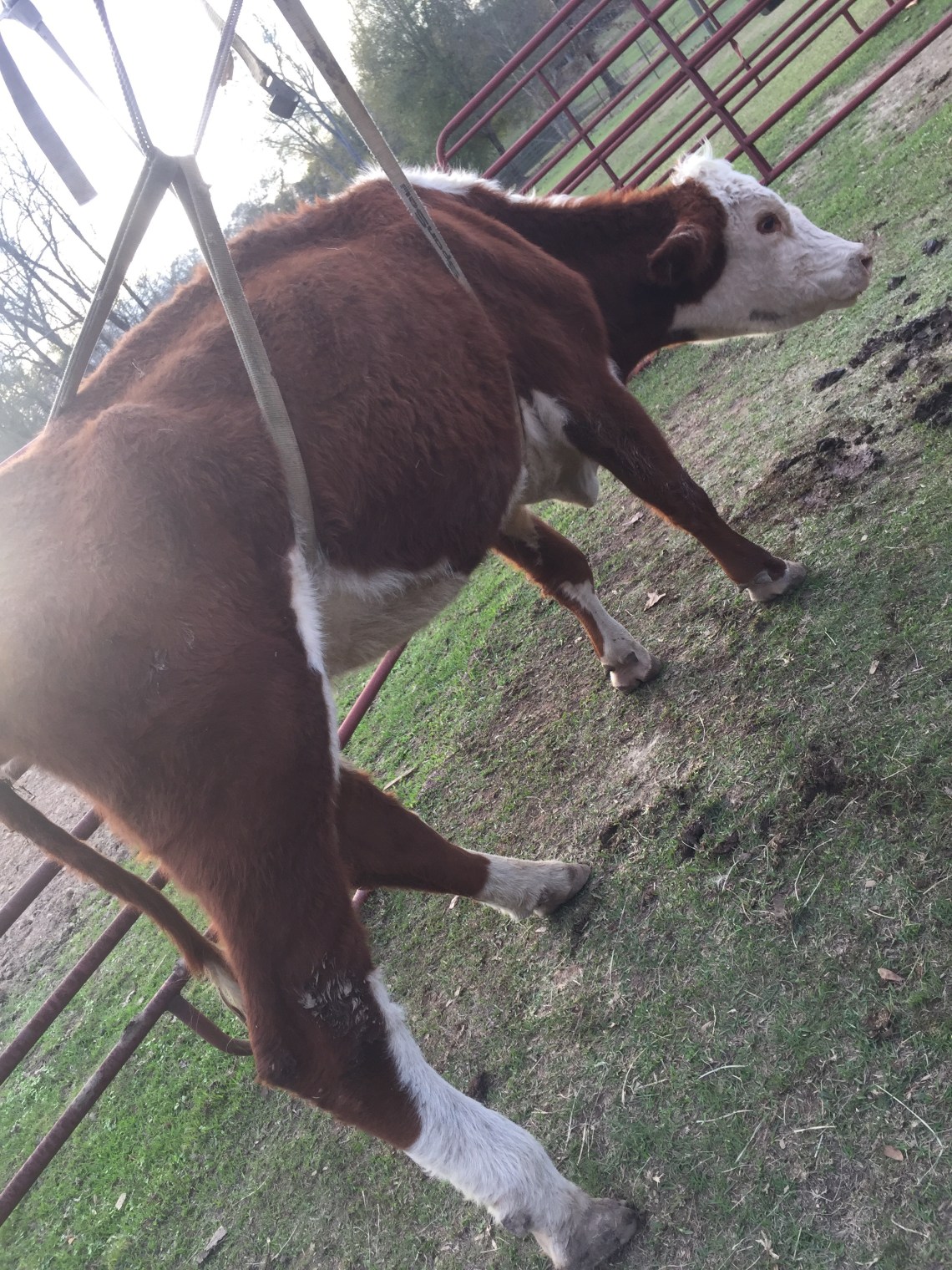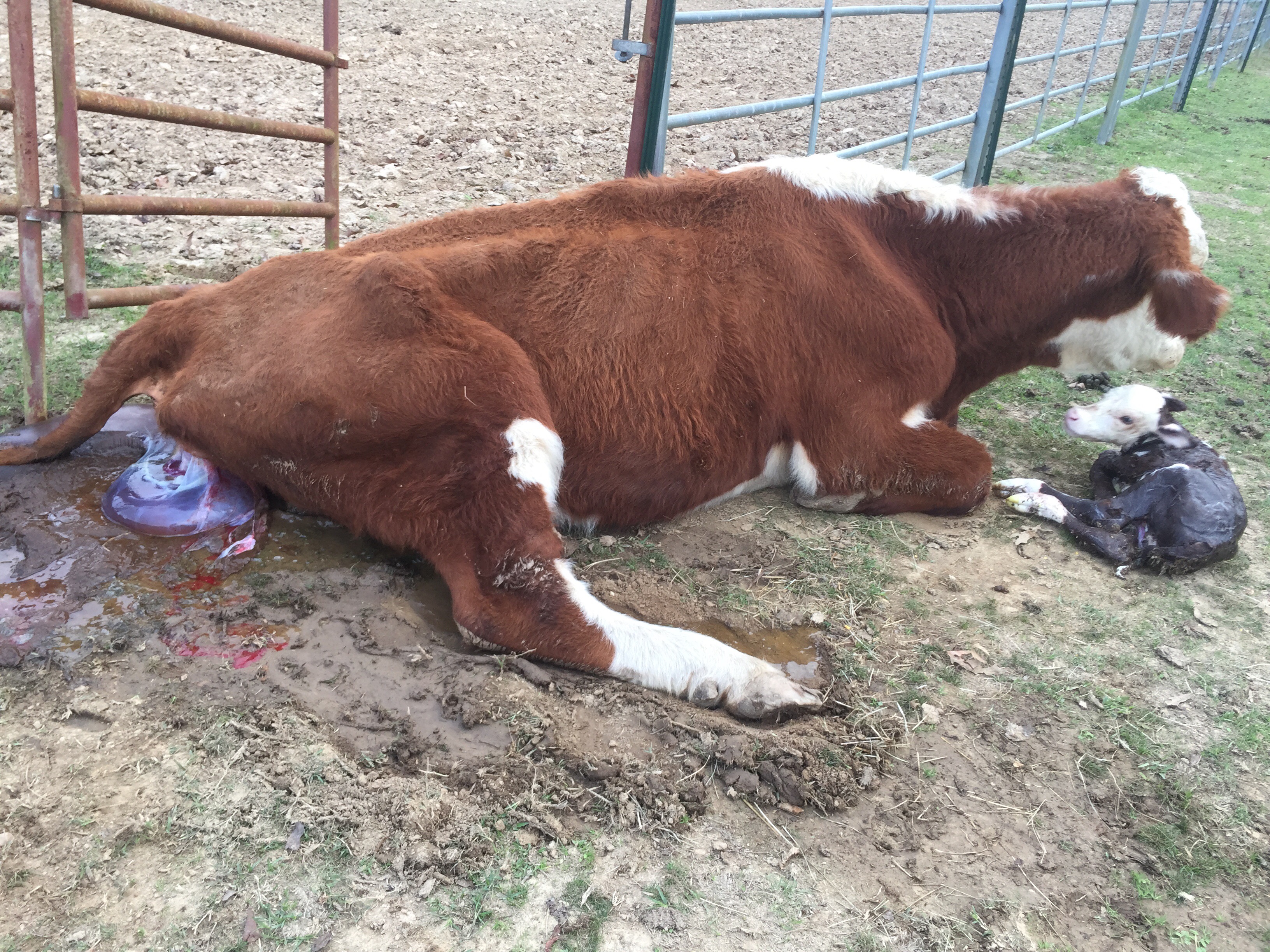 She went into labor. We had to help her deliver a tiny heifer calf.
