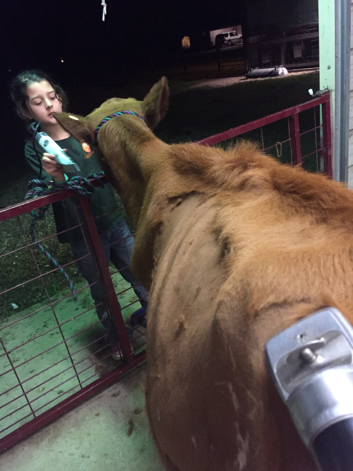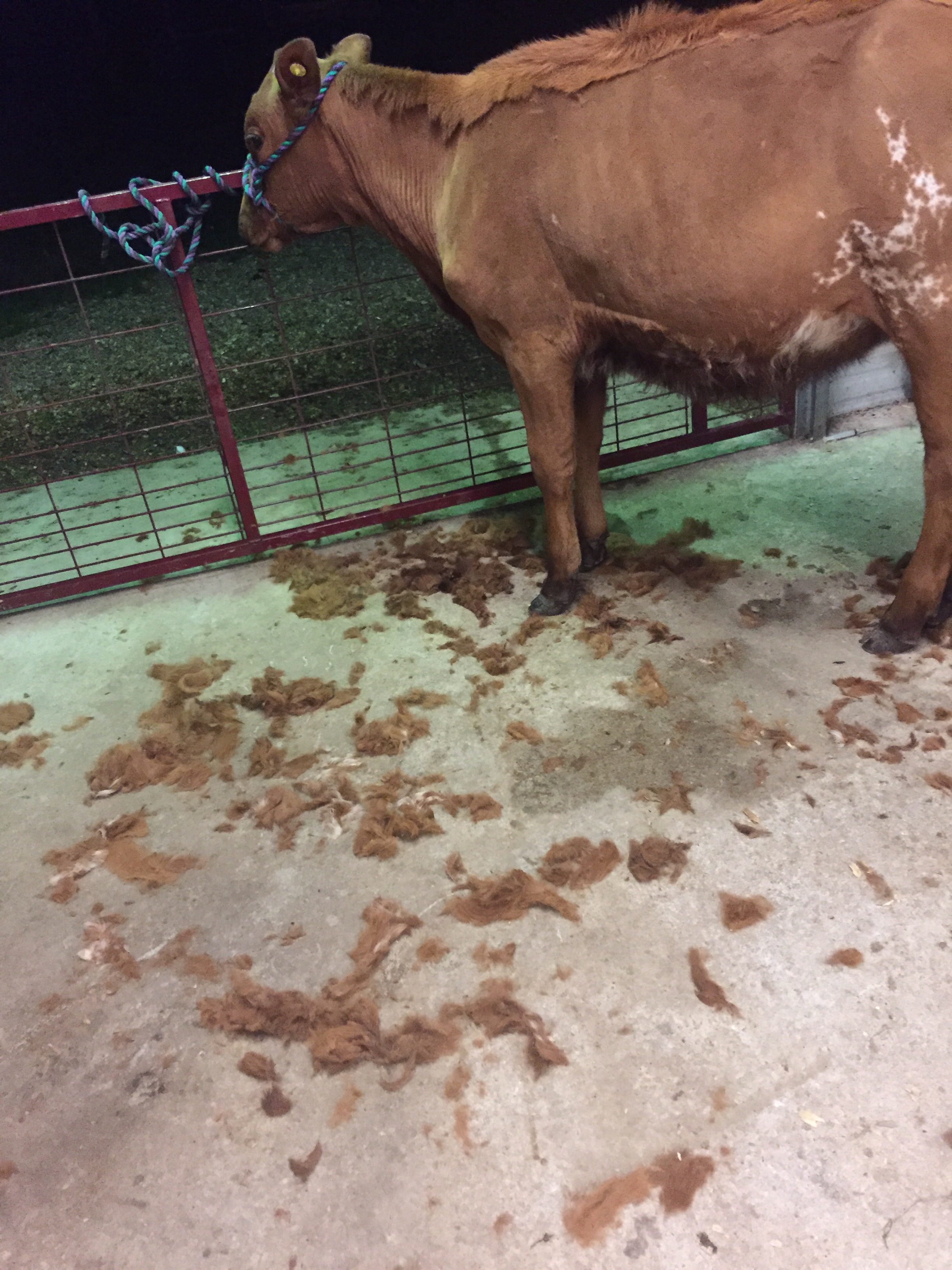 Tonight Landry decided to begin clipping her Ayrshire heifer, Lolly Pop.