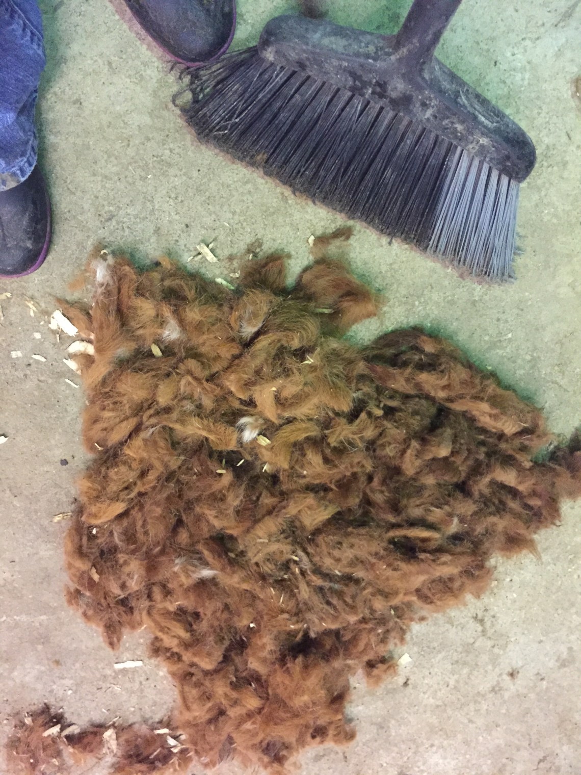 Landry clipped her head, while I worked on her body. Dairy cows get a full body shave for shows. The Mohawk will turn into a trimmed “top line” to help create a very straight line down the back.