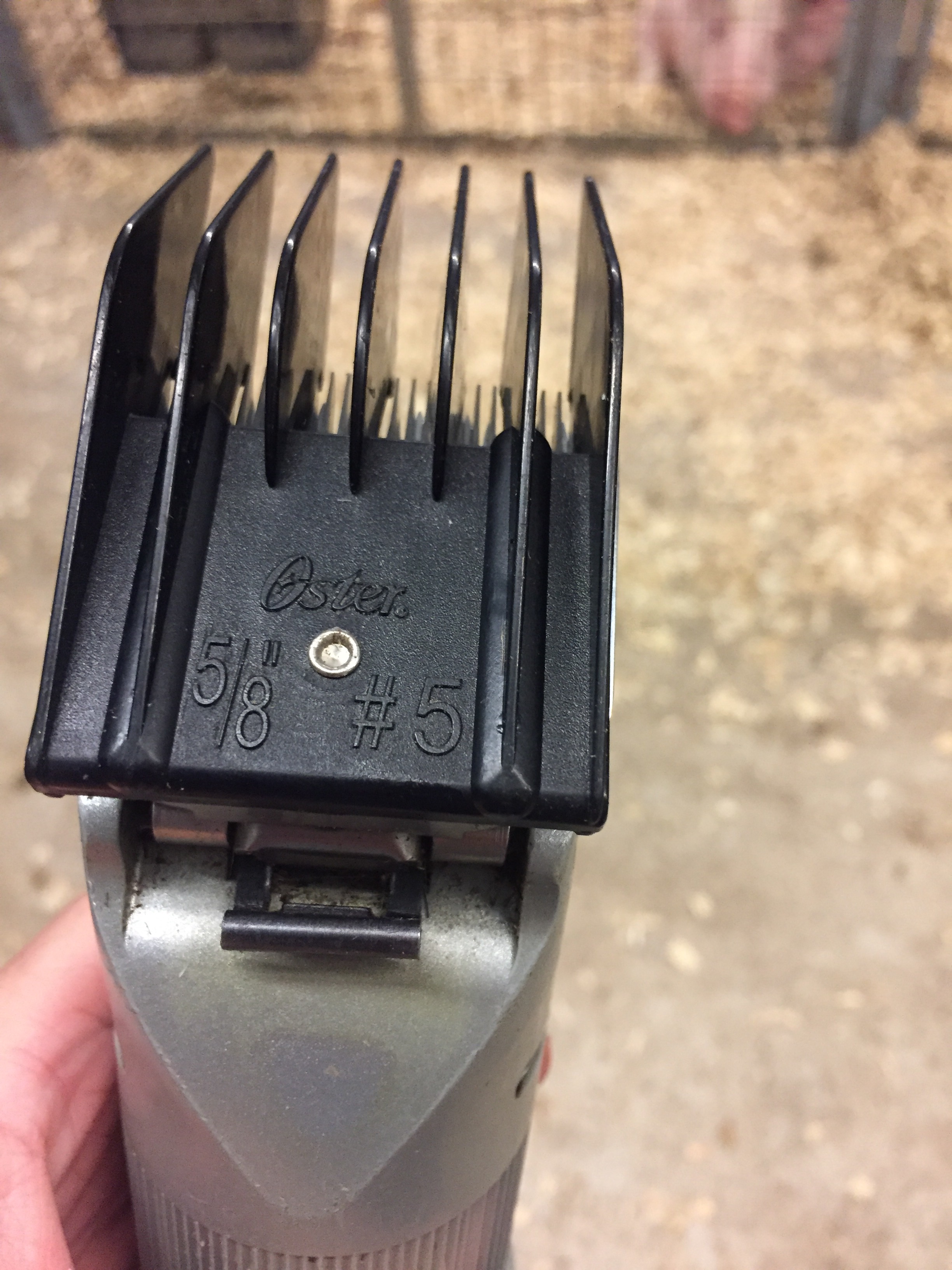 Pig hair must be clipped, but not shaved. Pigs grow quite a bit of hair. You only want to clean them up, getting rid of shaggy and stray hair. I use a #5 (5/8 inch) clipper guard for body hair, and a #3 for legs, blending at the upper legs.