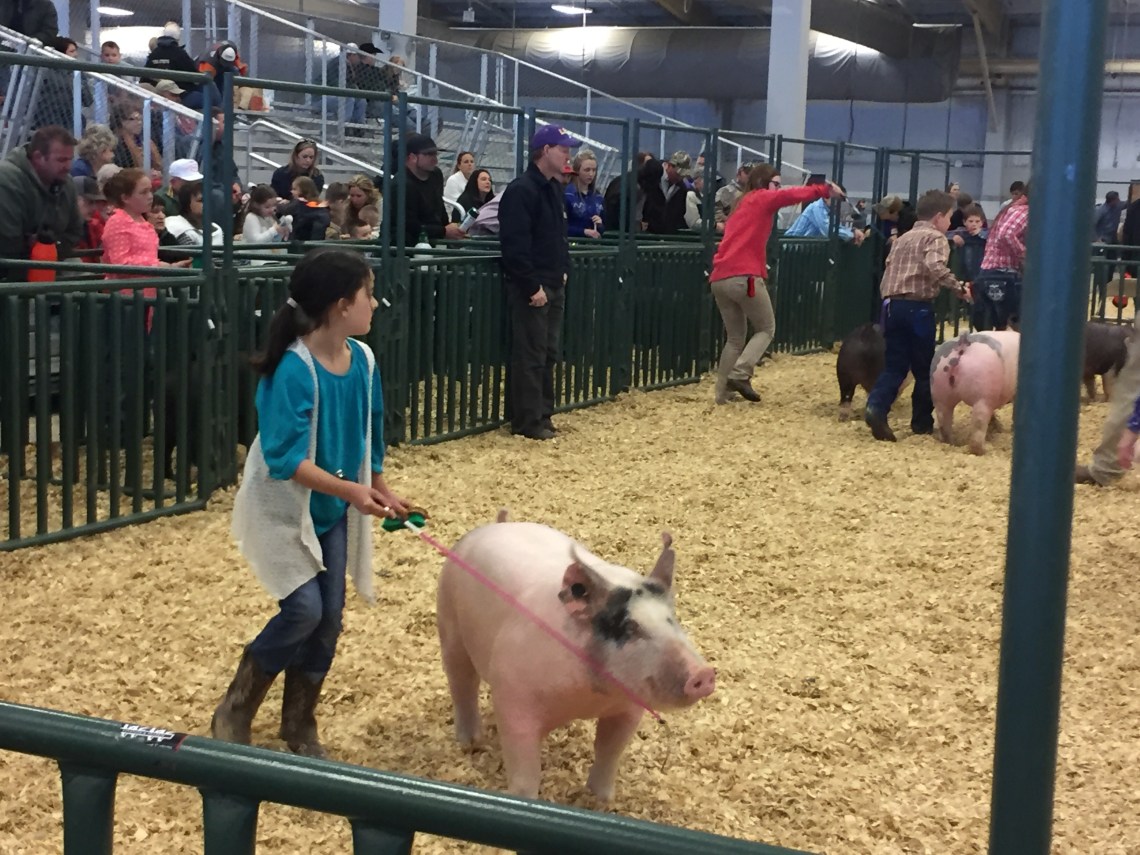 This year my youngest was able to “officially” show her first set of pigs. She chose a white cross barrow and a blue gilt. (Barrow = neutered male, gilt = young female)
