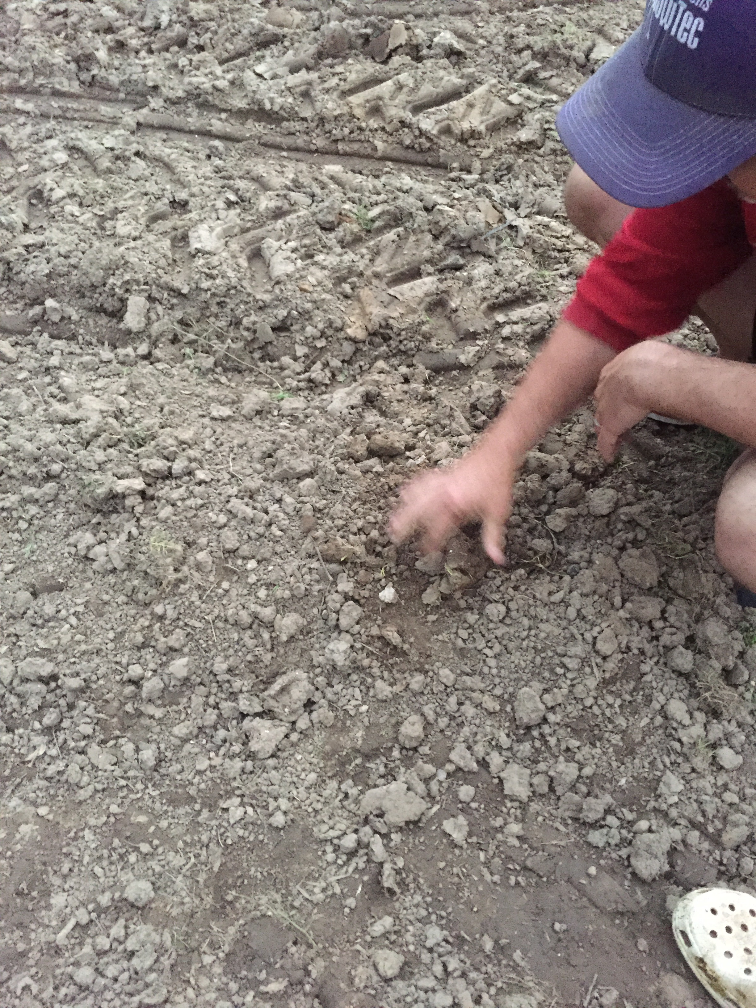 We planted about 10 days ago, giving each plant 12 inches of space. We should begin to see sprigs of green in a few more days.