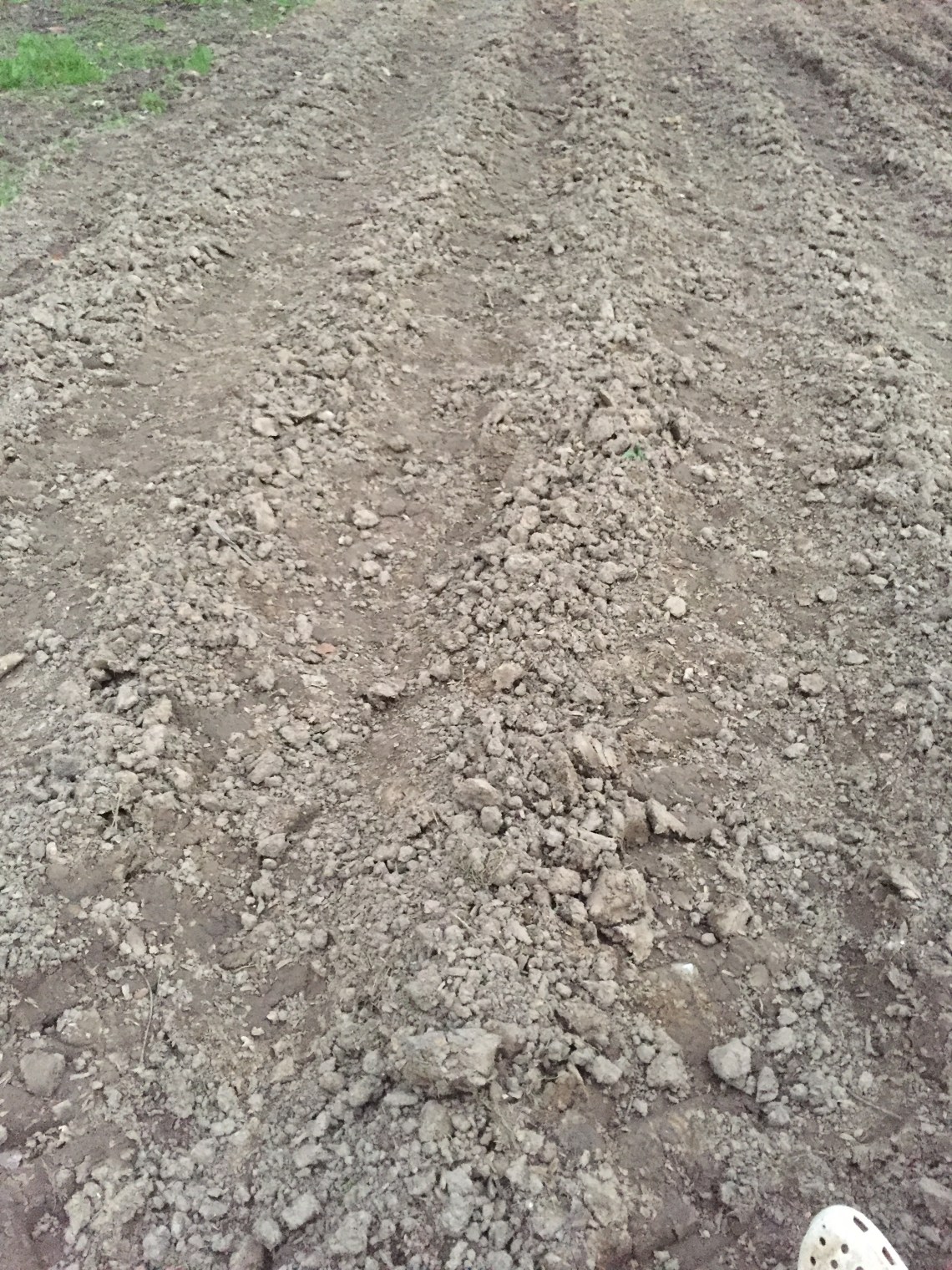 Marty tilled up my garden spot, where we did have lettuce and carrots. Then he made 5 rows, each 45 ft long.