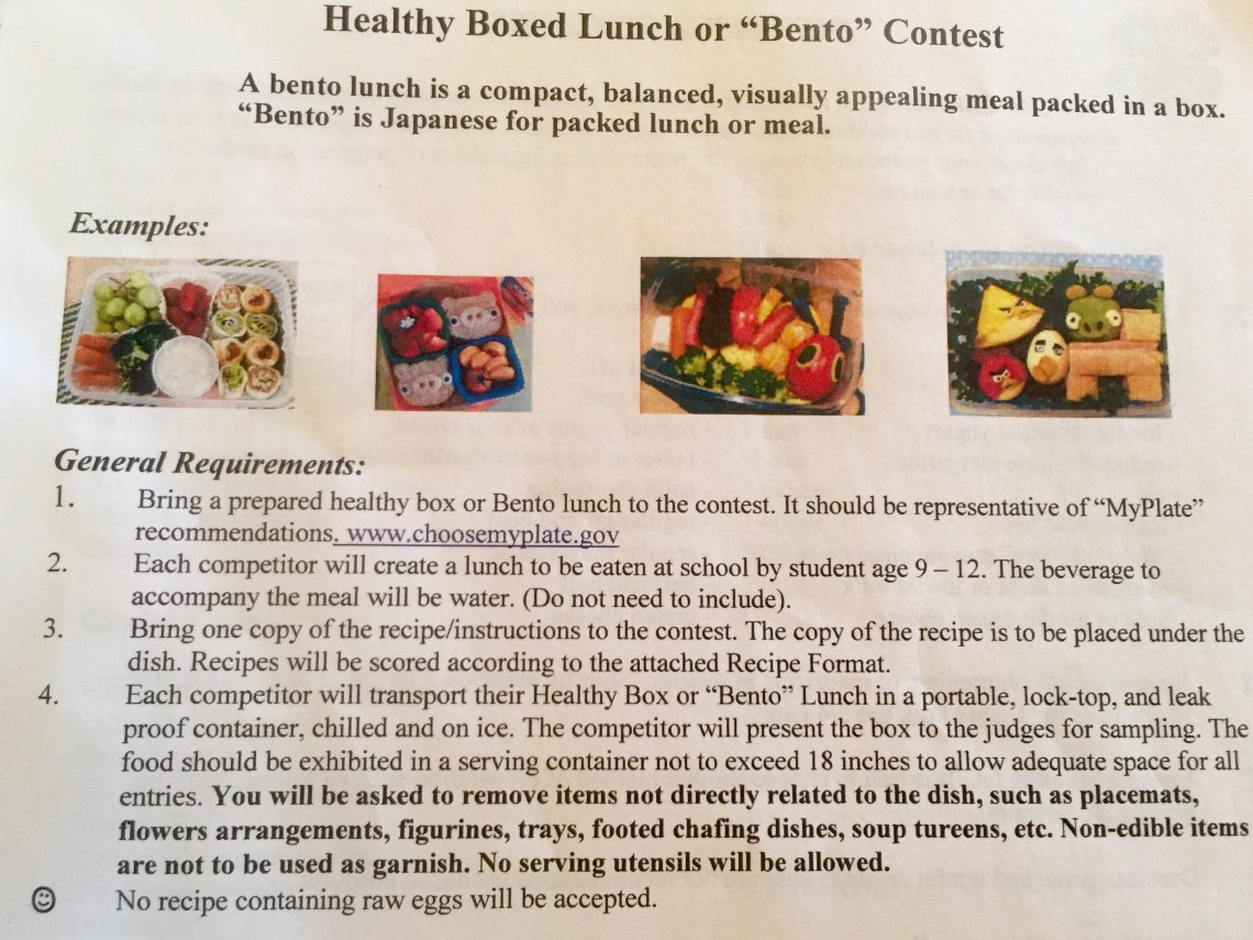 Landry has a 4-H cooking contest today. Her favorite category?  The Bento box lunch.