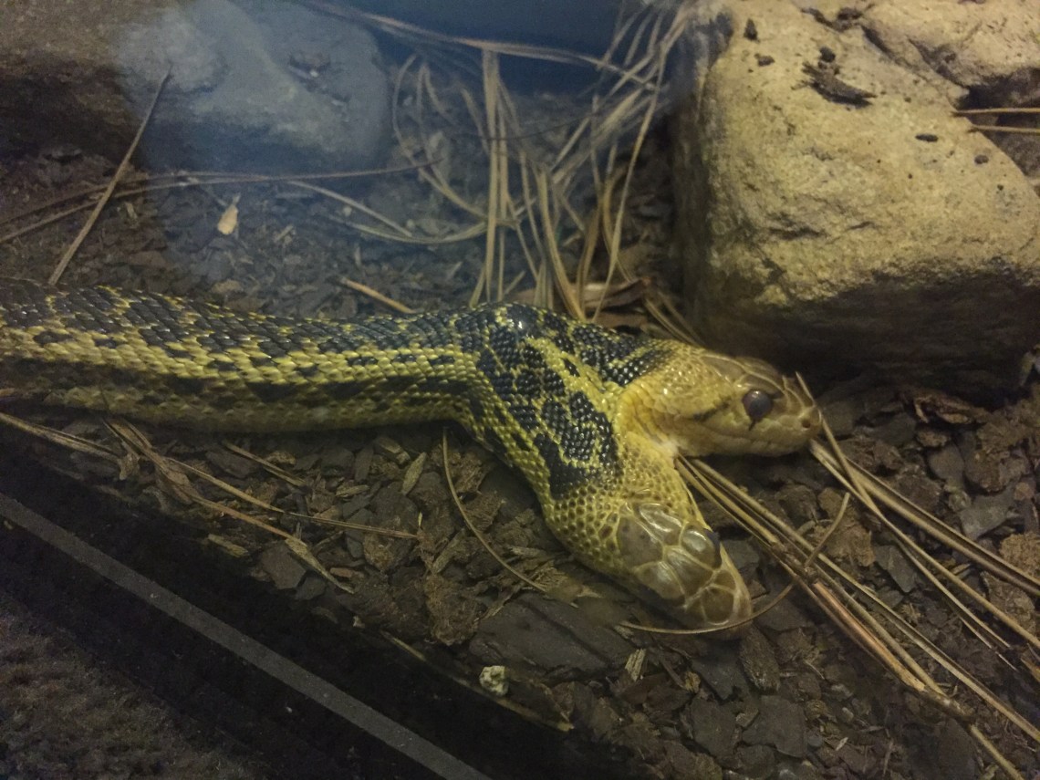 This snake is a “siamese twin”. The embryo tried to split into two separate snakes but did not finish. The result is a two-headed curiosity.