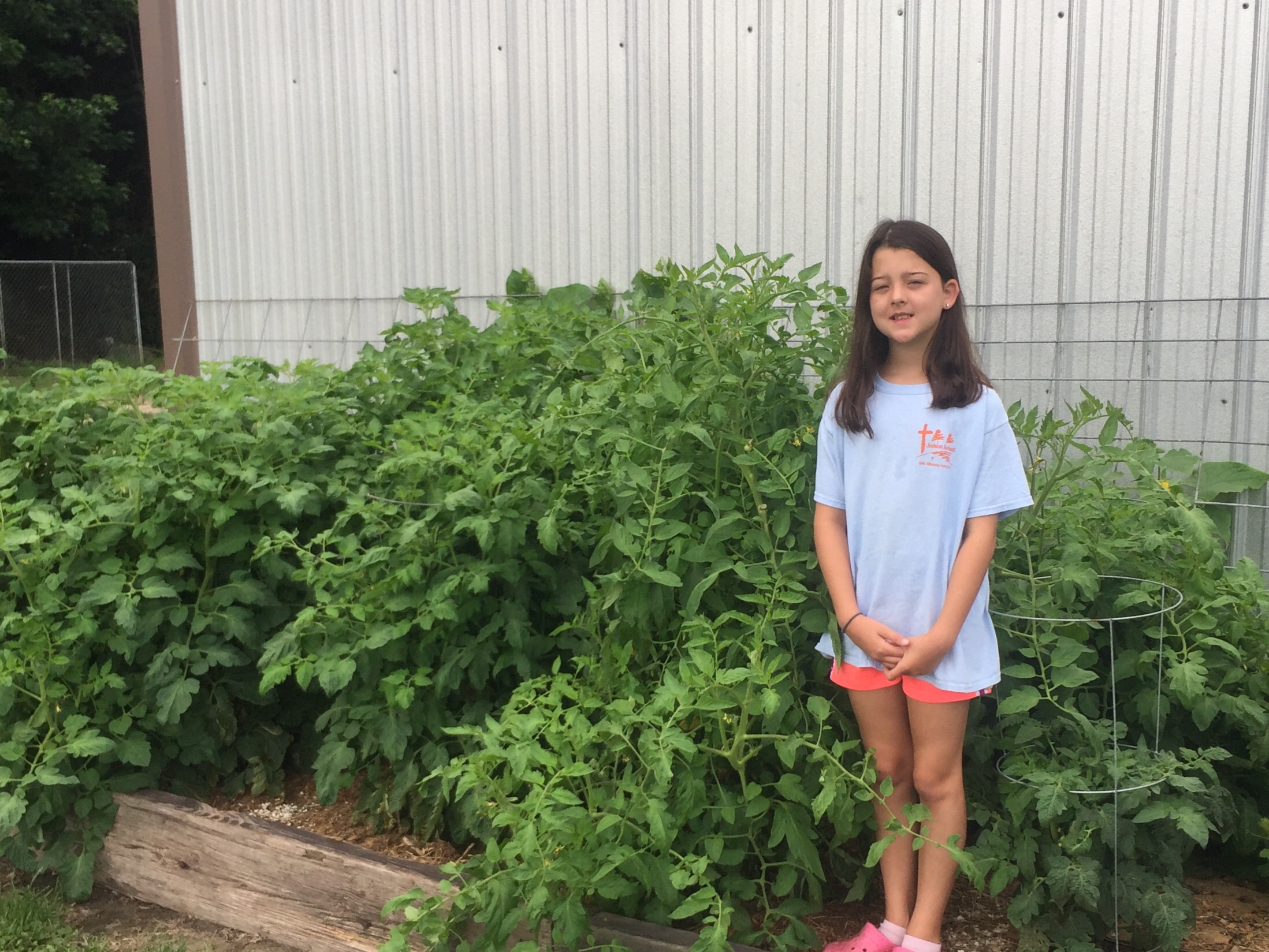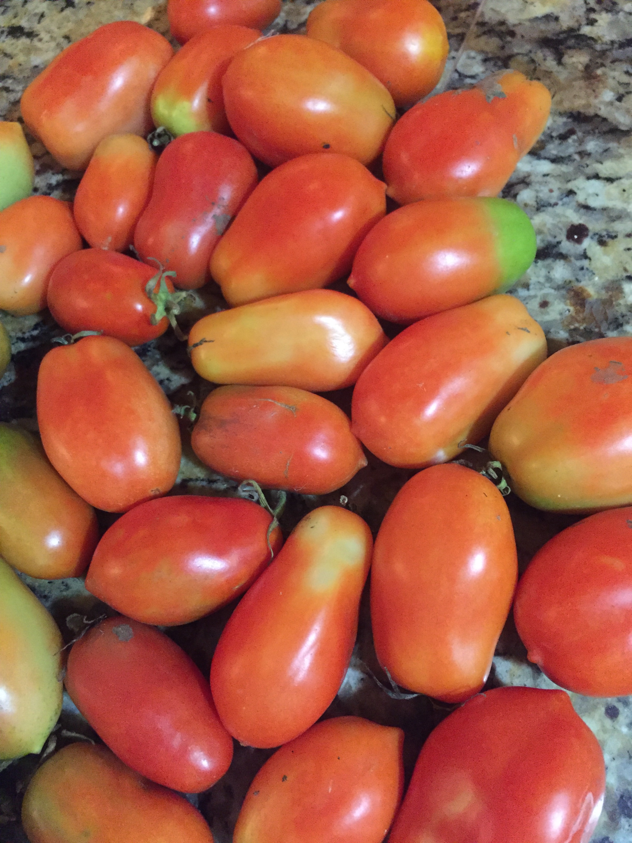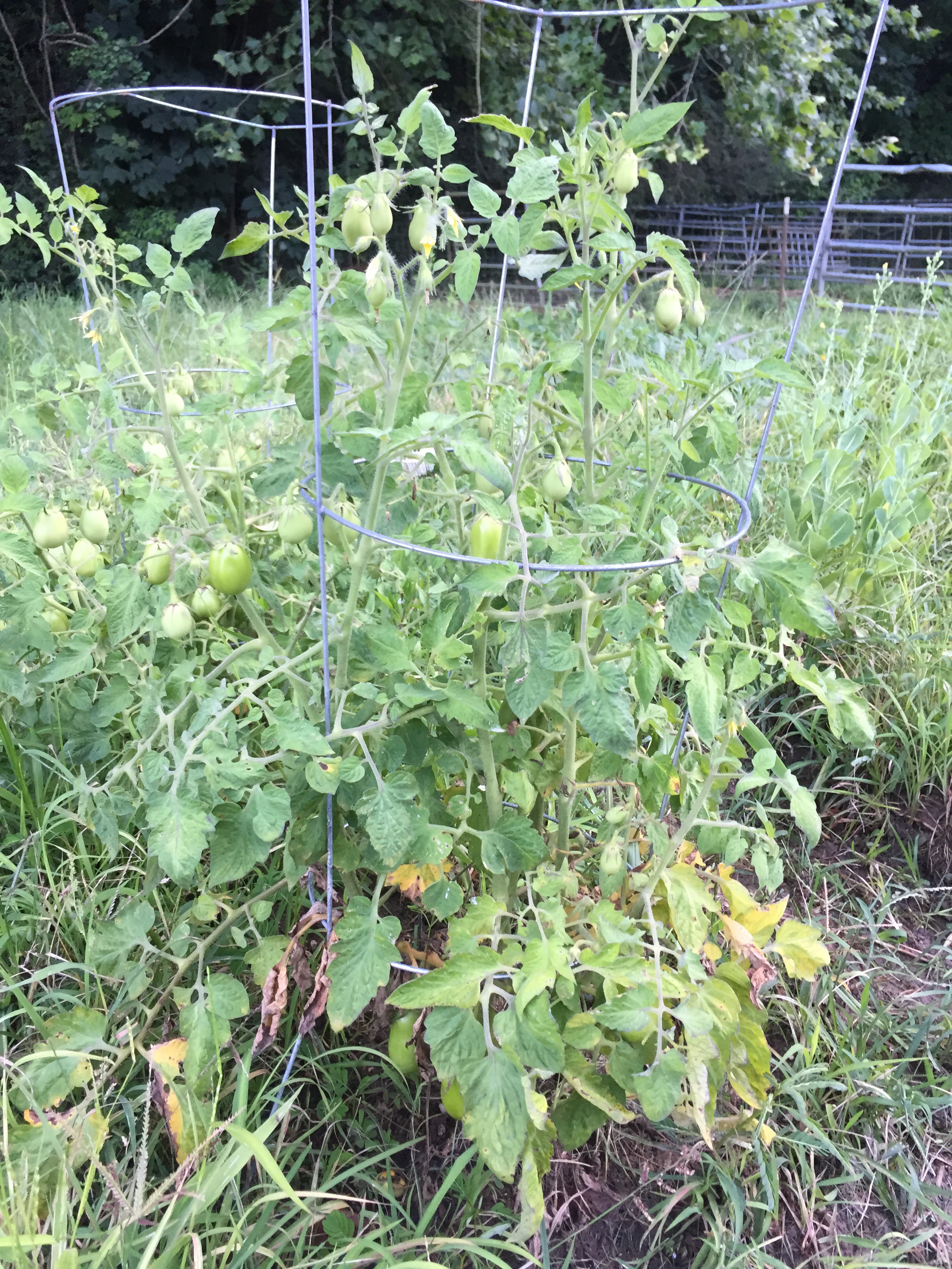These are extra tomato plants that I threw out in the bean patch. Same exact tomatoes as the next photo, only planted outside of my raised bed, which we filled with cow manure and composted hay from the pasture. I think you’ll be impressed at the difference good soil makes.
