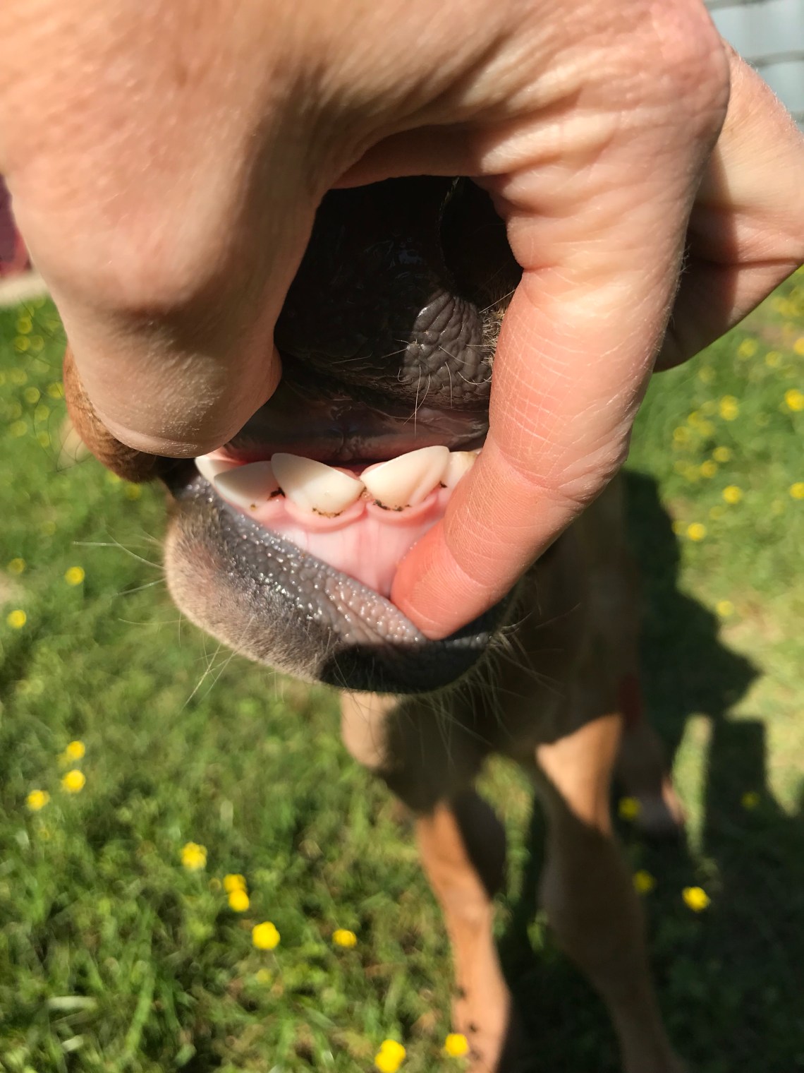 She does have a full set of lower front teeth. These are baby teeth and will be replaced by adult teeth when she becomes mature. These teeth are lost over the ages of 2-5 years old. That’s a way to estimate the age of mature cattle.
