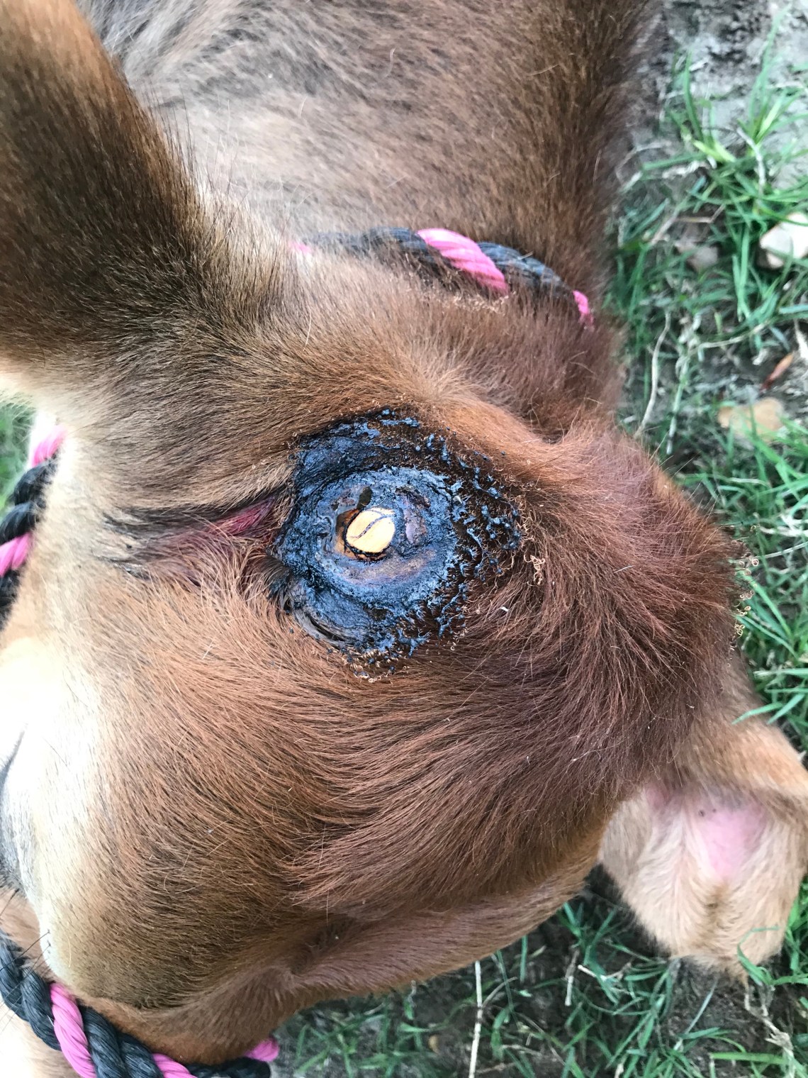 Here is a photo of a good burn ring around the tiny horn bud.