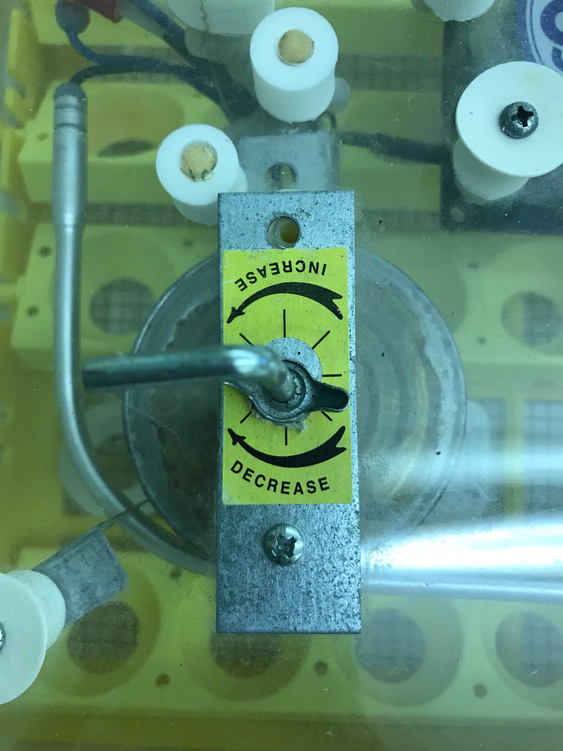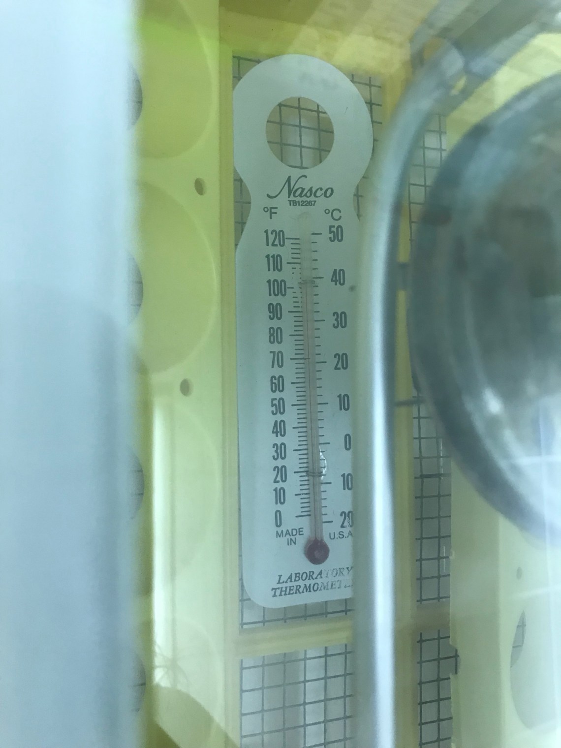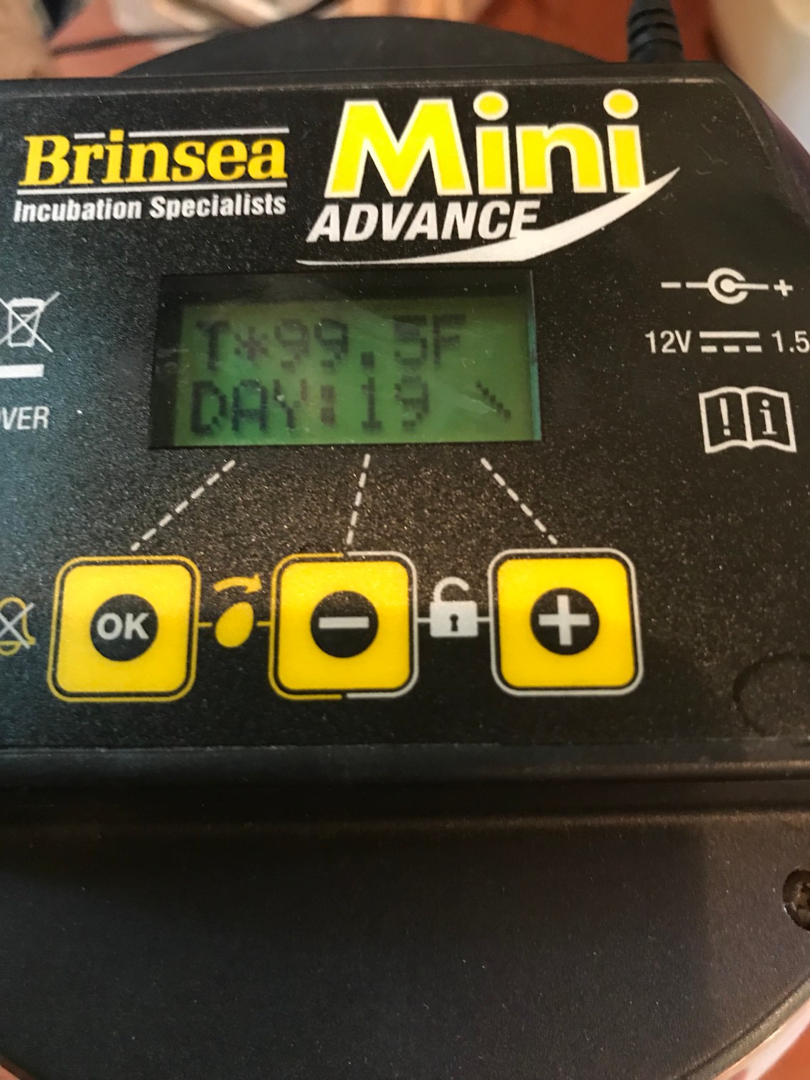 Do you see some differences? The yellow trays gently rock the eggs, rather than rolling them as my small Brinsea does. The humidity is regulated using the trough system in the bottom of the incubator. The heating element is controlled manually and the temperature gauge must be read several times a day to keep the temperature regulated.