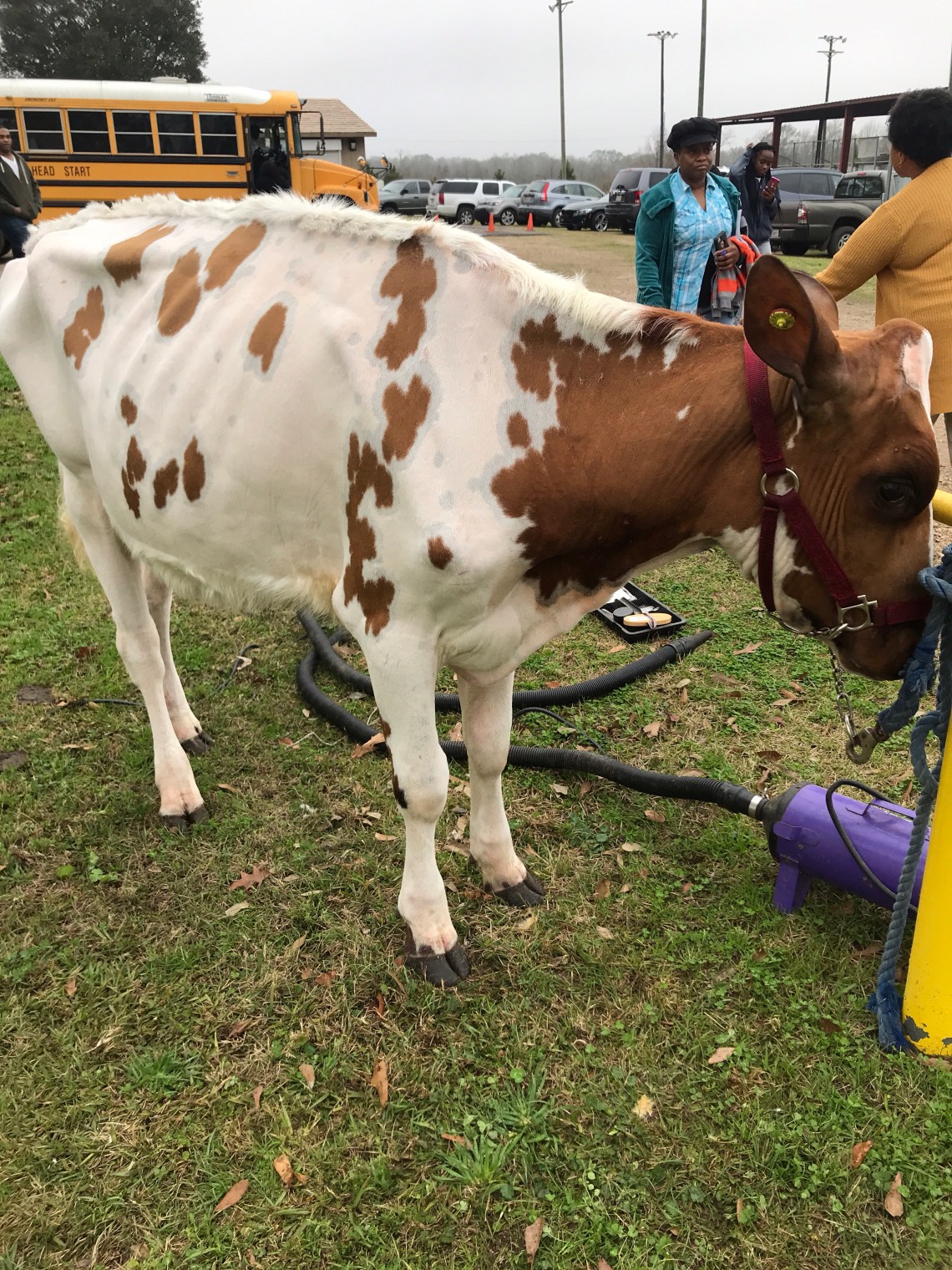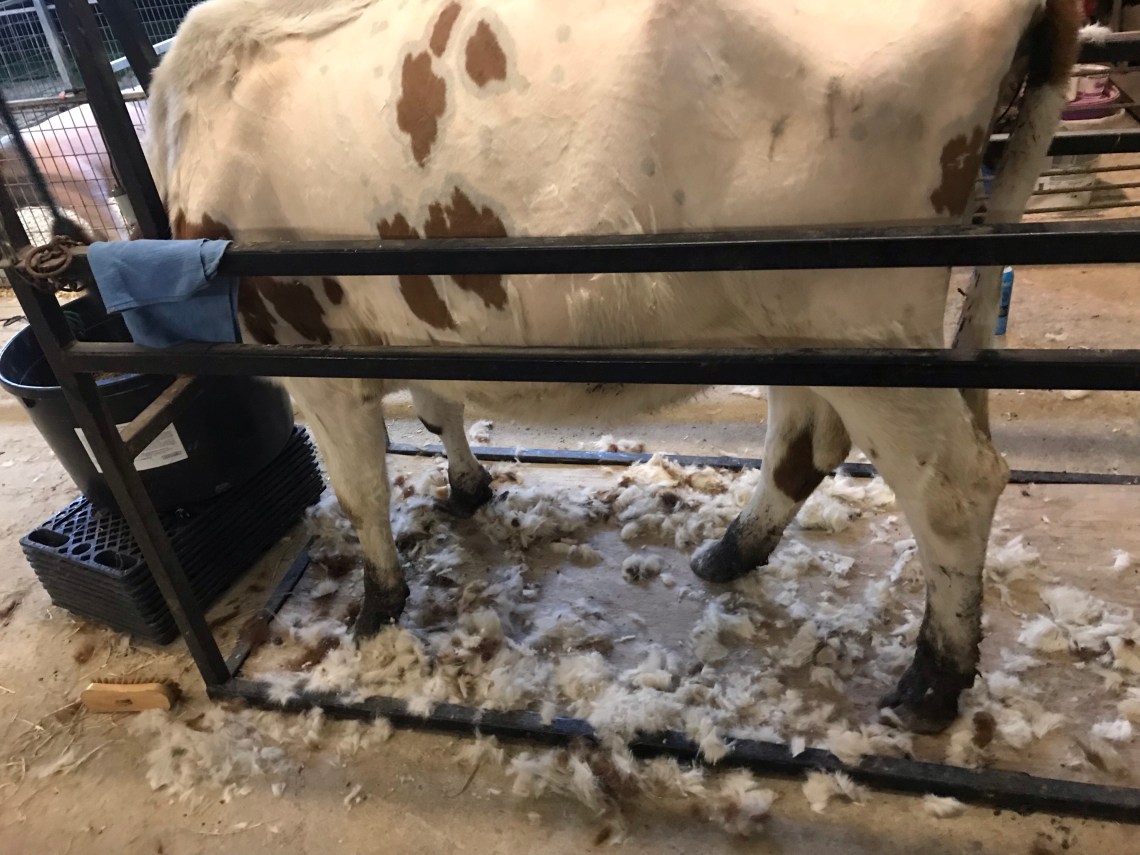 Here is Landry shaving her Ayrshire heifer, Ollie.
