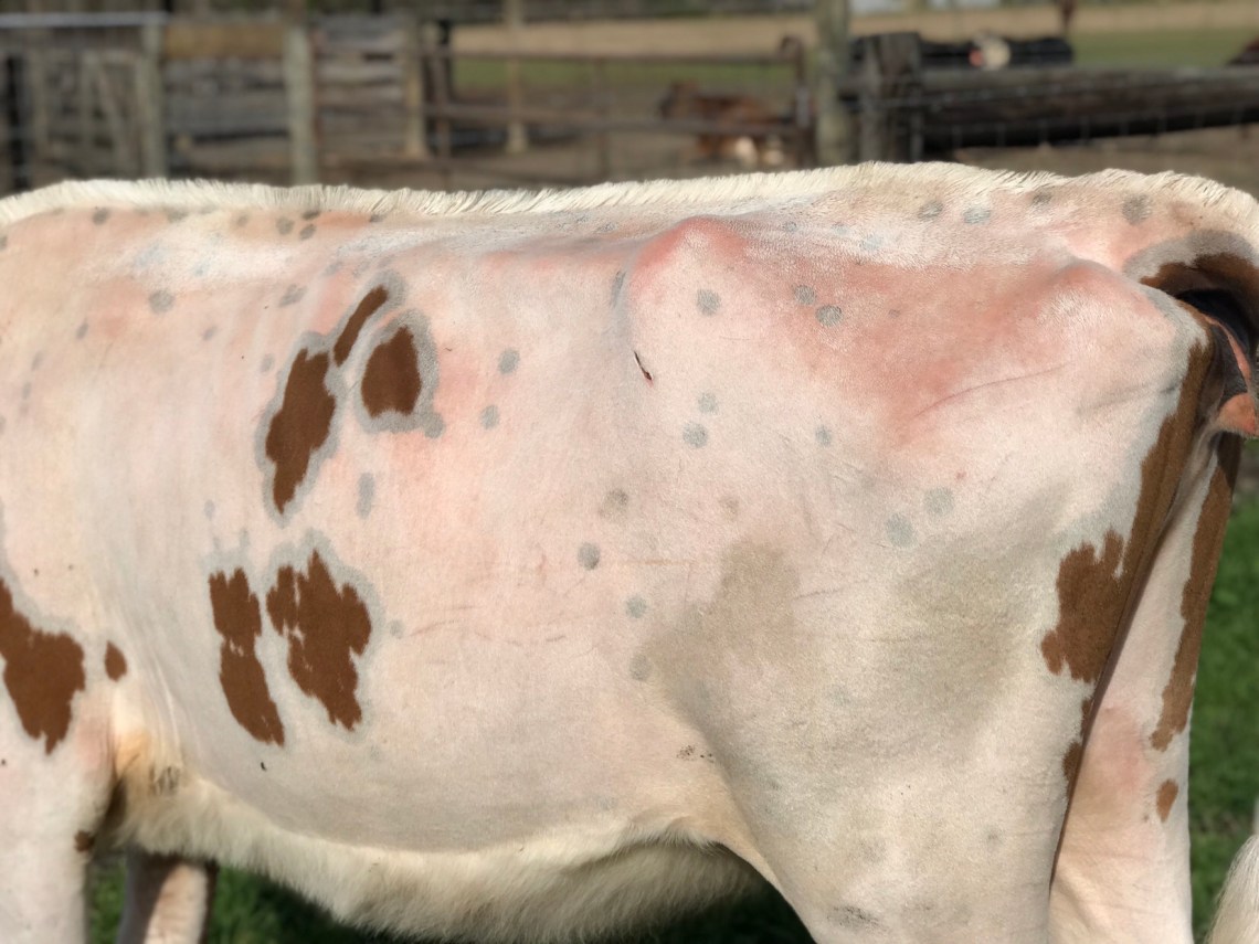 Normally their hair will protect them. However, when we show out animals, we usually clip hair so the judge can assess body condition and conformation.