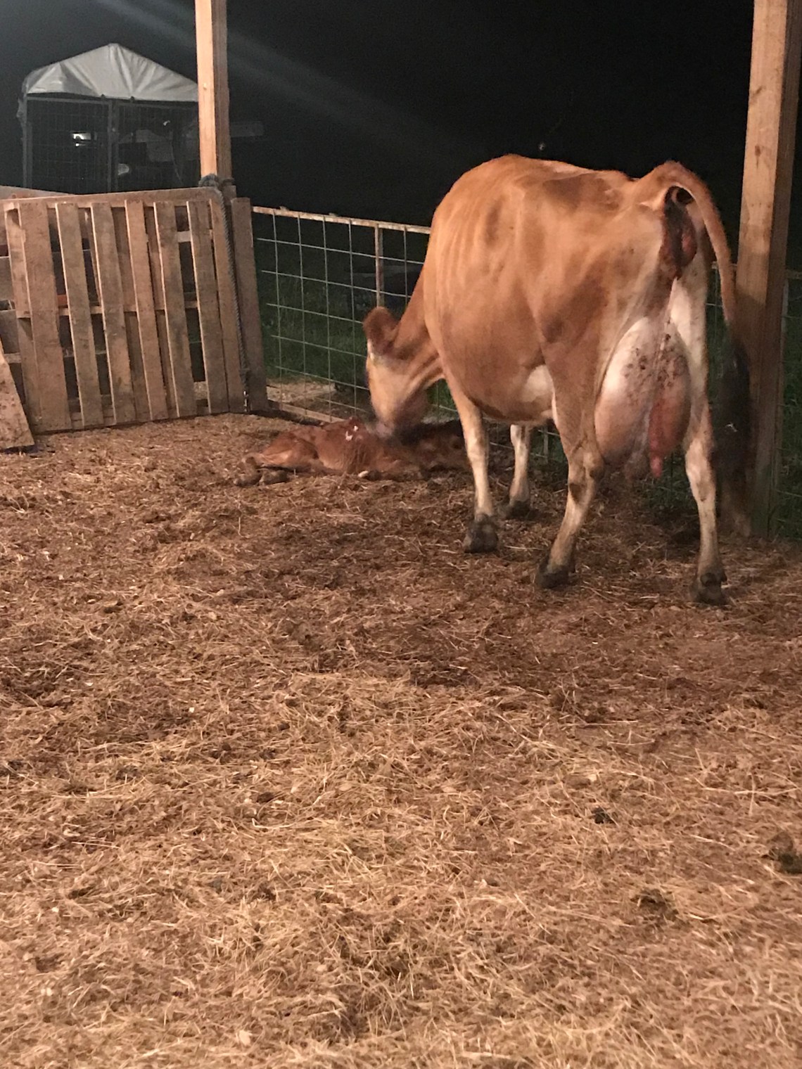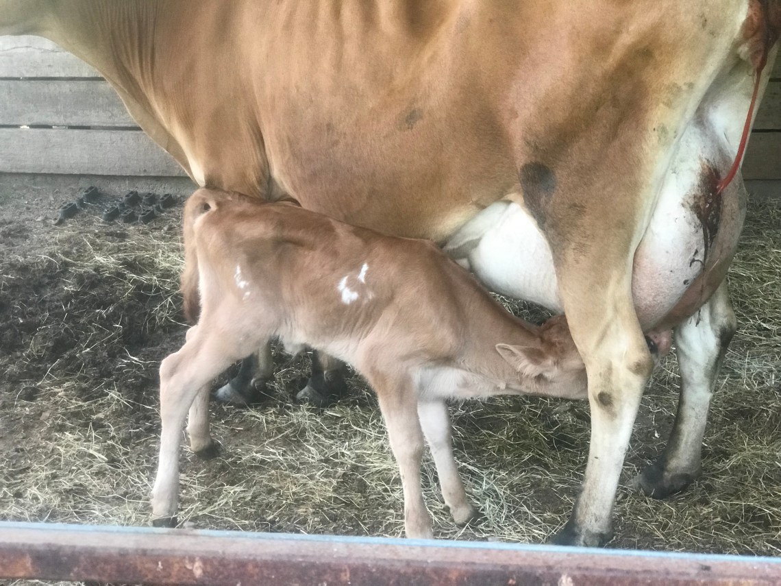 At 6 am, they are well-bonded and the calf is nursing that vital first milk, known as colostrum. (I have an entire post about the importance of colostrum.)
