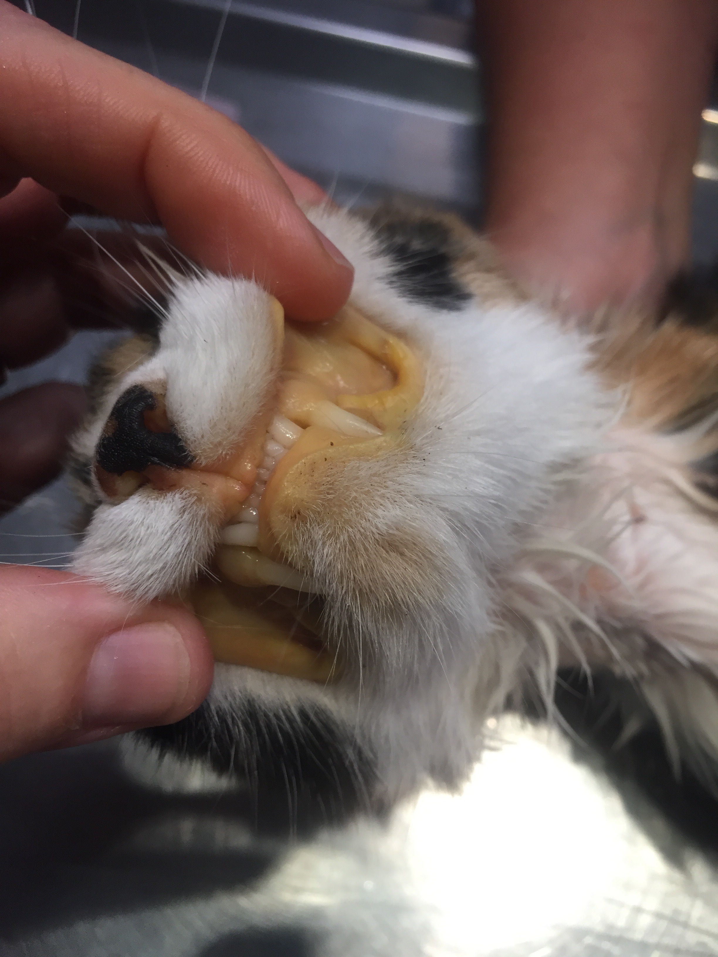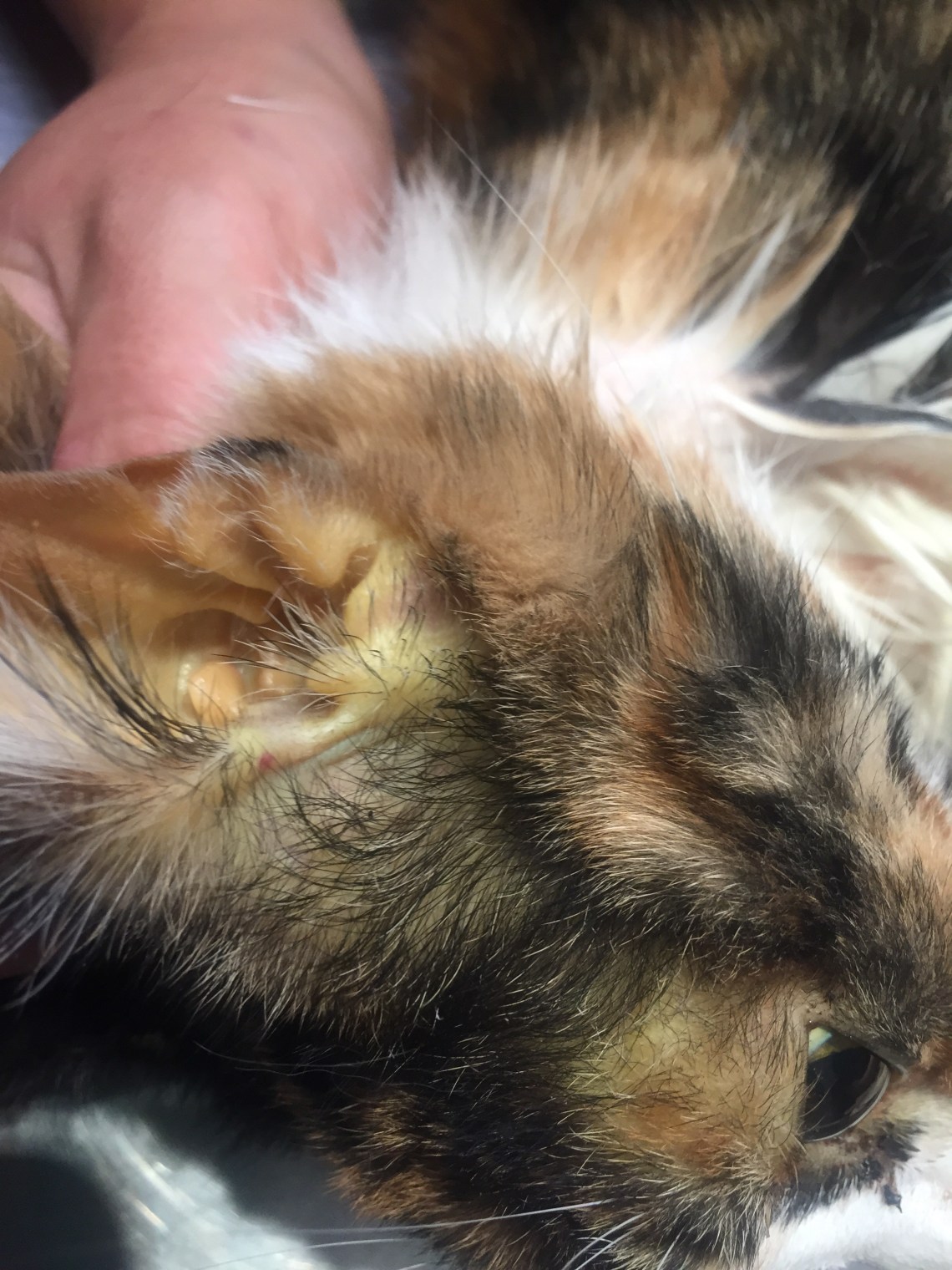 Cats should not be yellow. But this one was very yellow, even throughout her entire body. Look at her skin color in her ears.