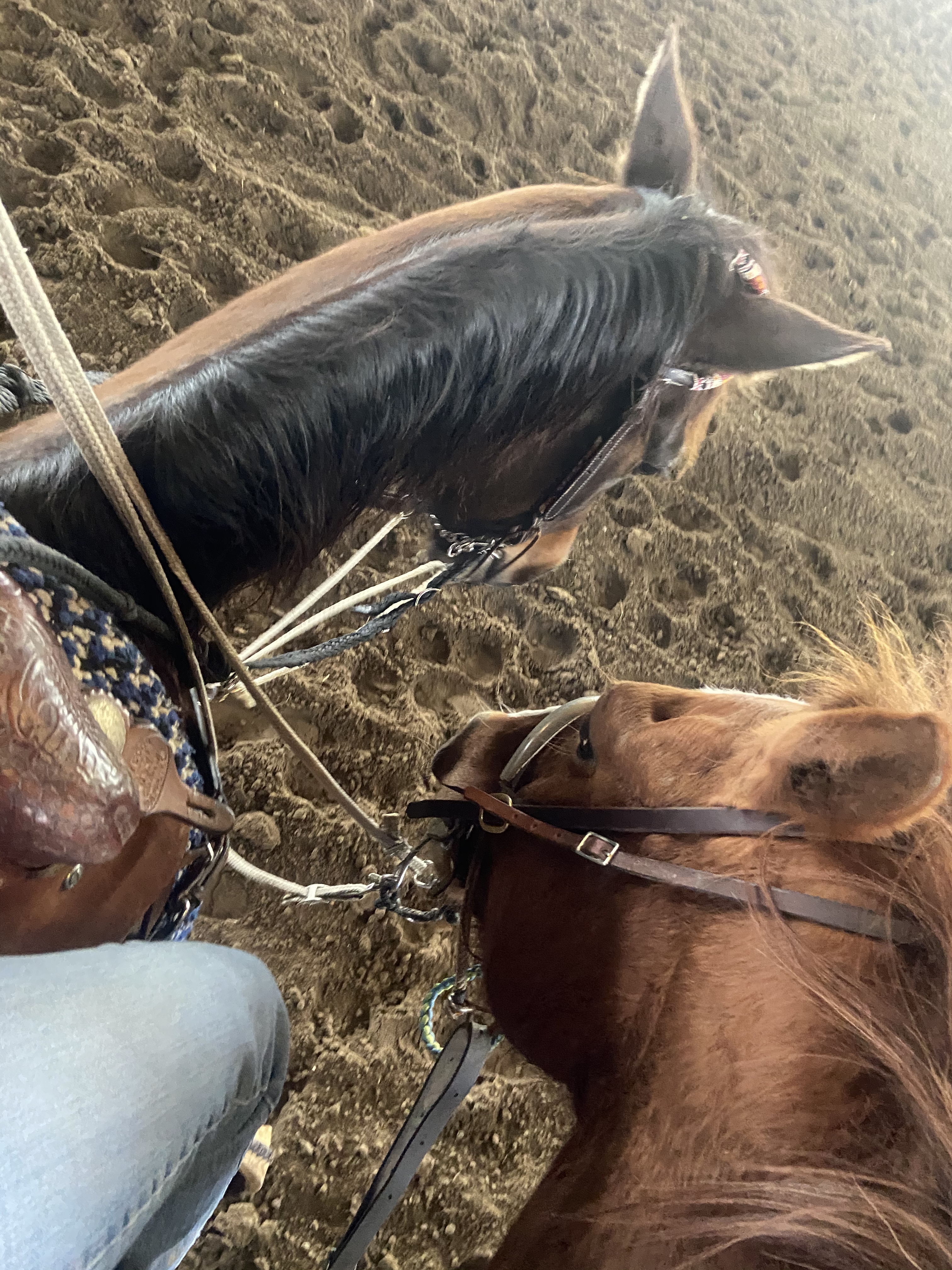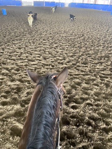 It has been so wet for us this winter, that we haven’t had much opportunity to rope or simply exercise the horses well. Today we ventured out to the nearby covered pen to get some calf roping practice and barrel drills done. This qualifies as family, fitness, AND fun!