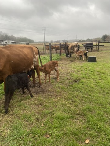 All 5 calves are nursing well on the two dairy cows. It is taking all 5 to nurse out both cows completely and Tiki’s mastitis is clearing up. The calves are doing very well and flourishing.