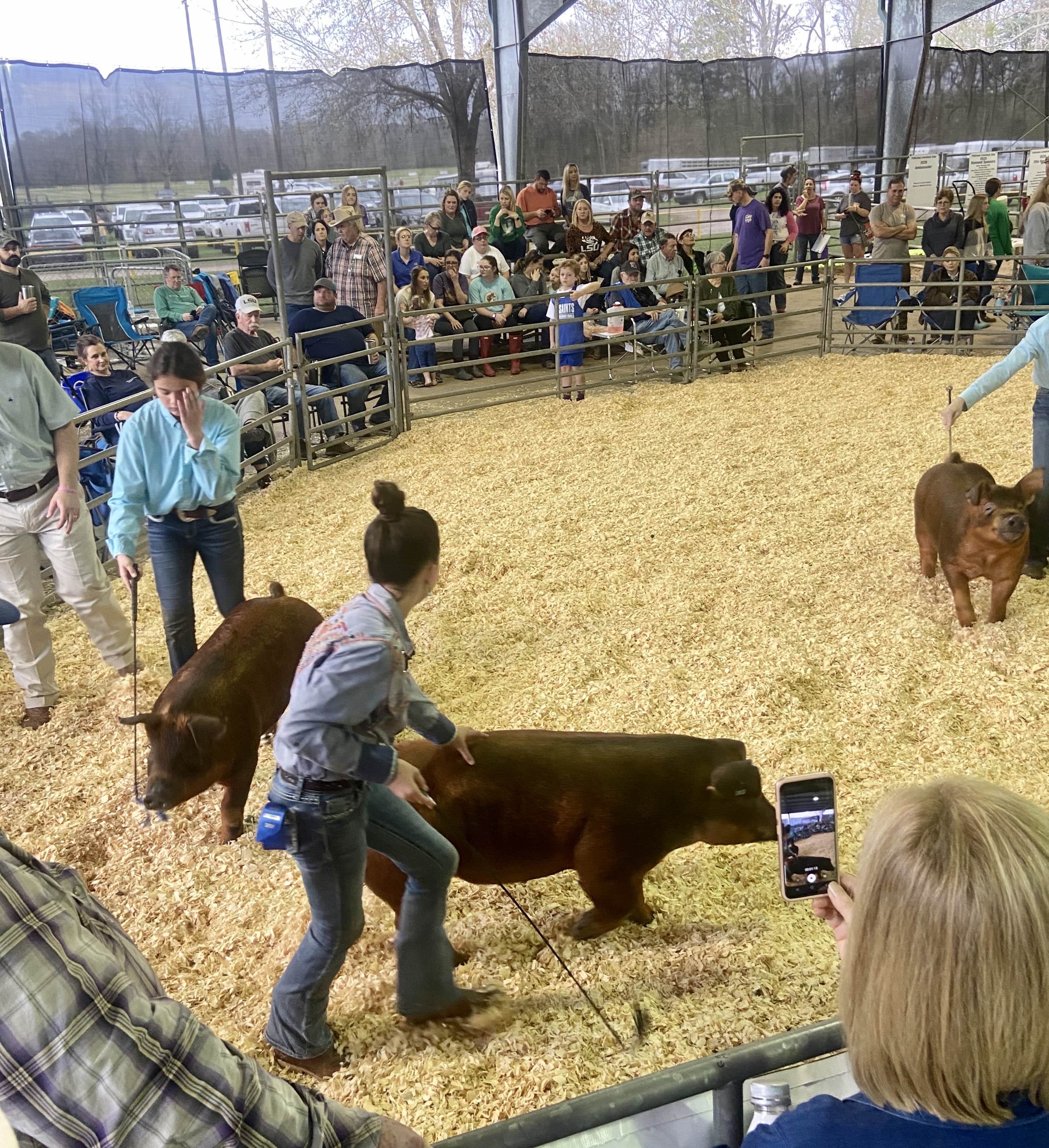 When she went back into the ring for the grand champion drive, her pig decided it was done. The pig screamed and tried to go back to its pen the entire time.