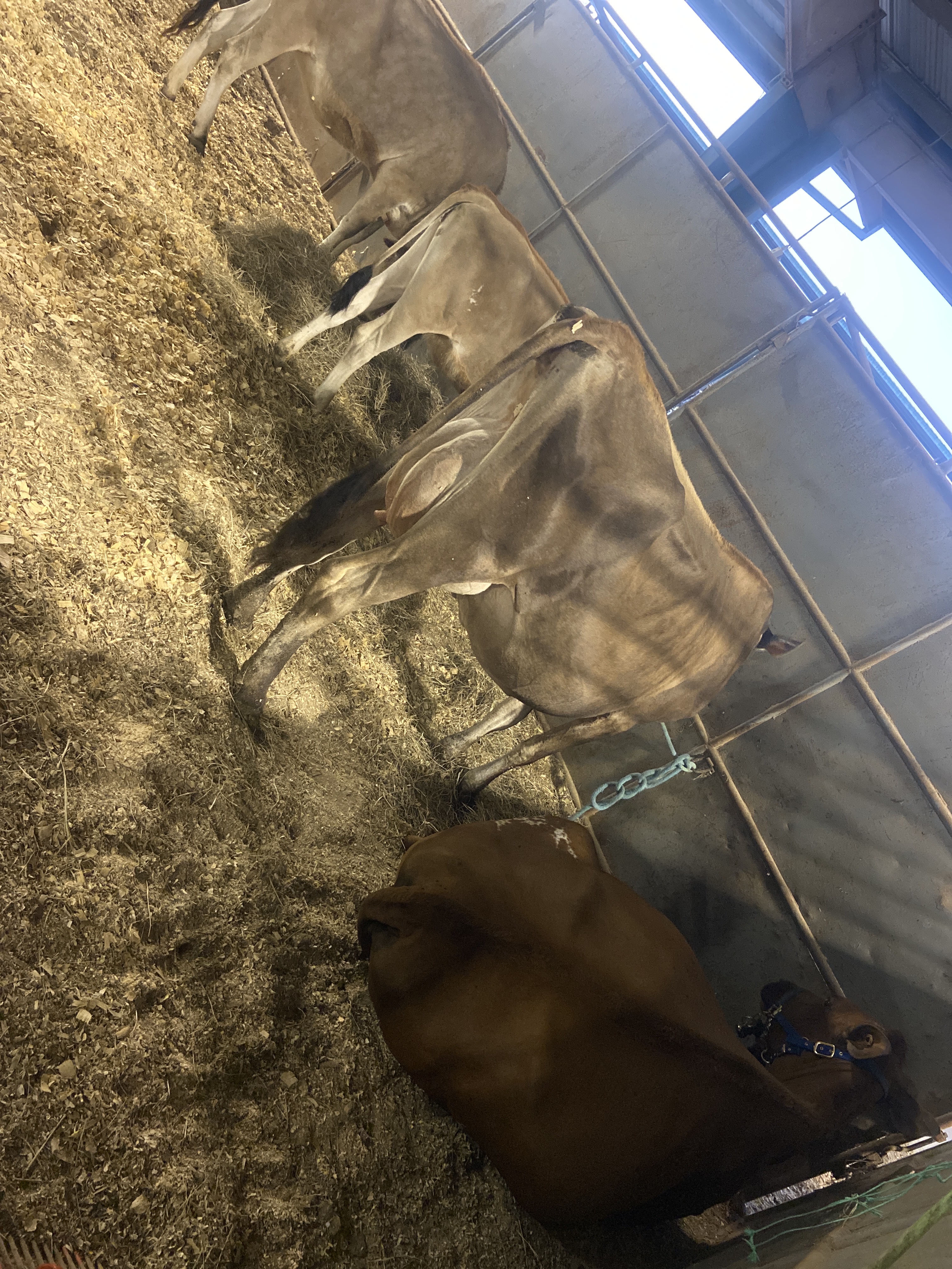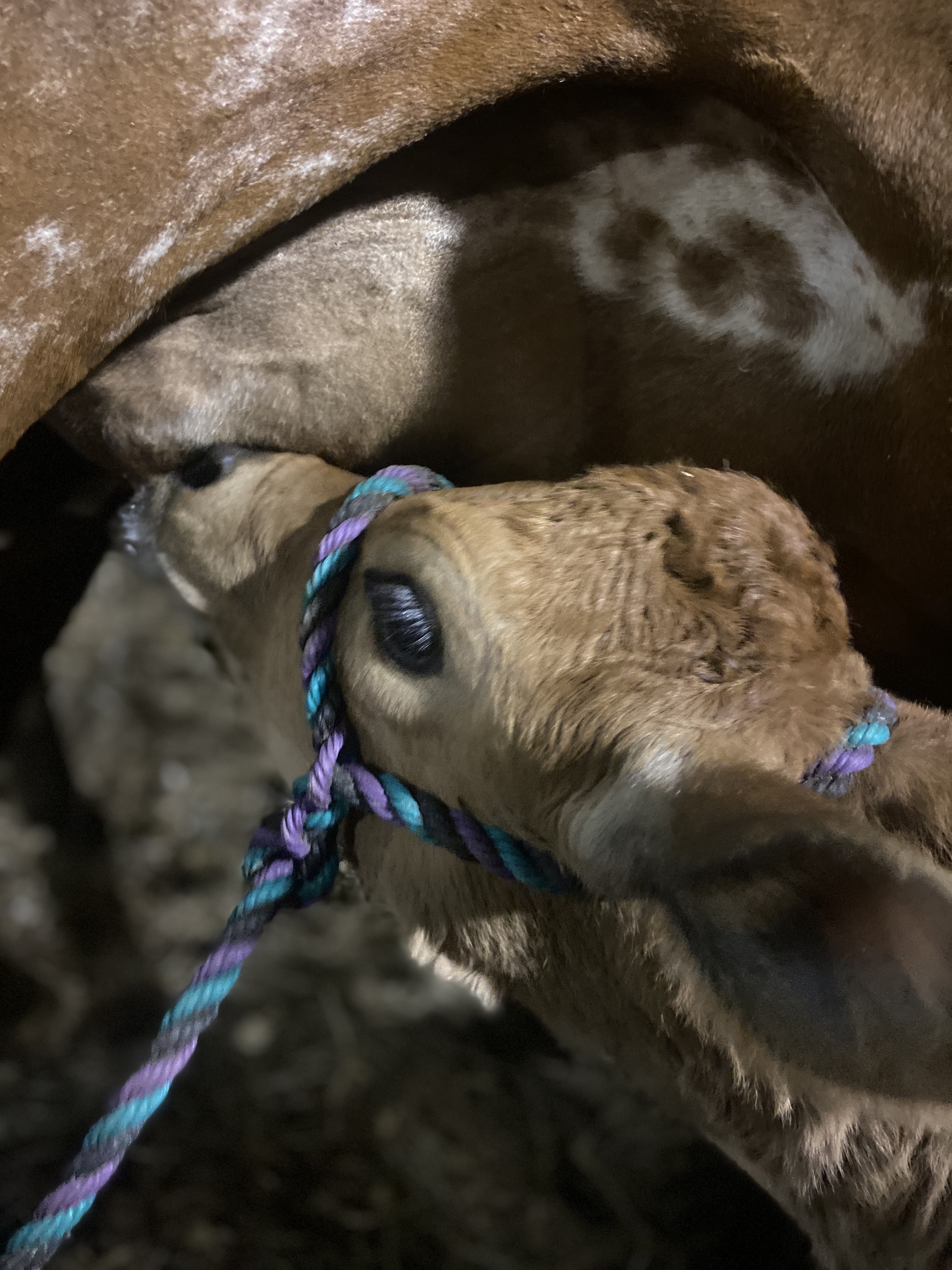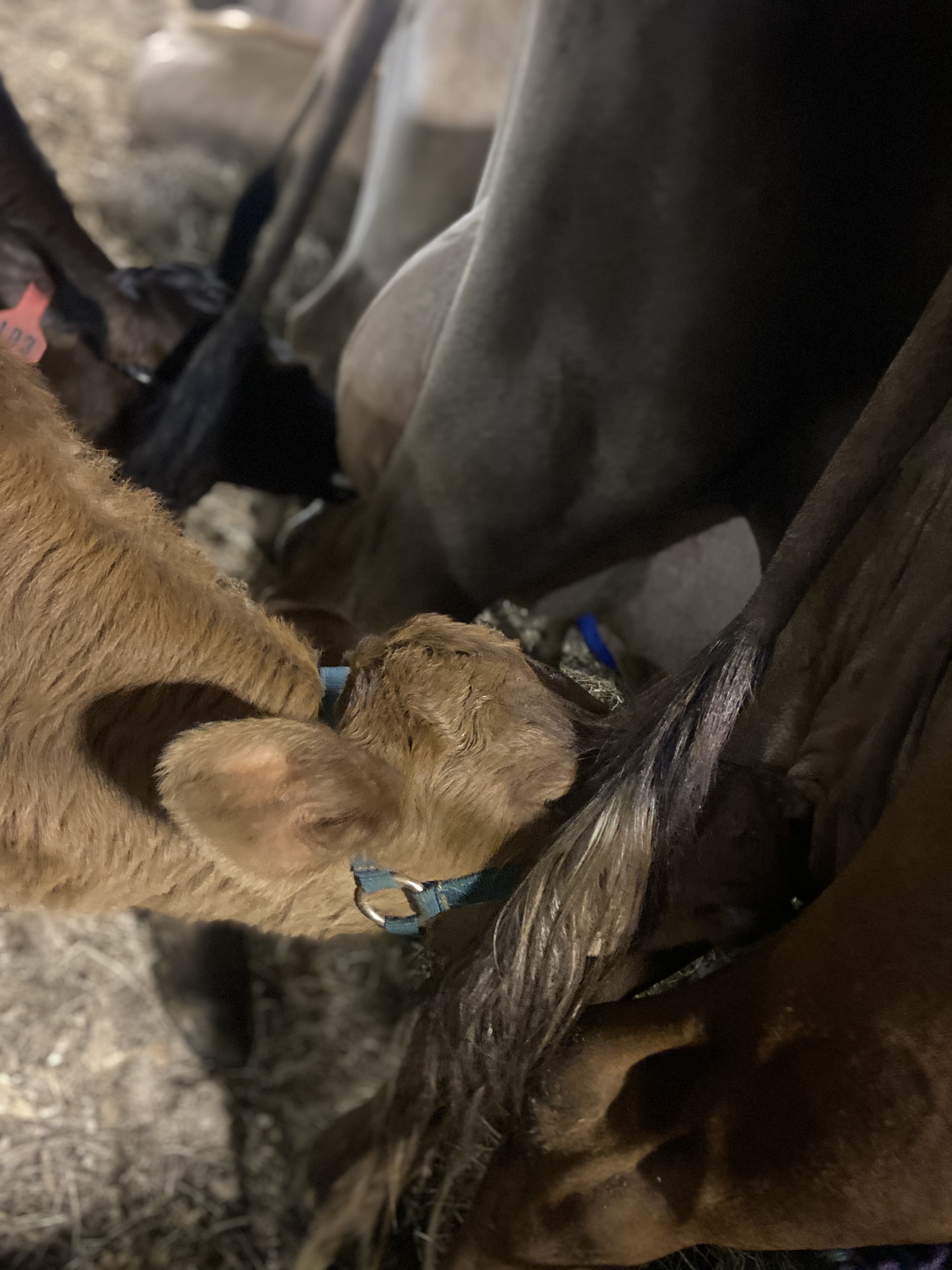 We are about to feed the cows, let the calves nurse, then go to the chicken barn to cheer for our friends there.
