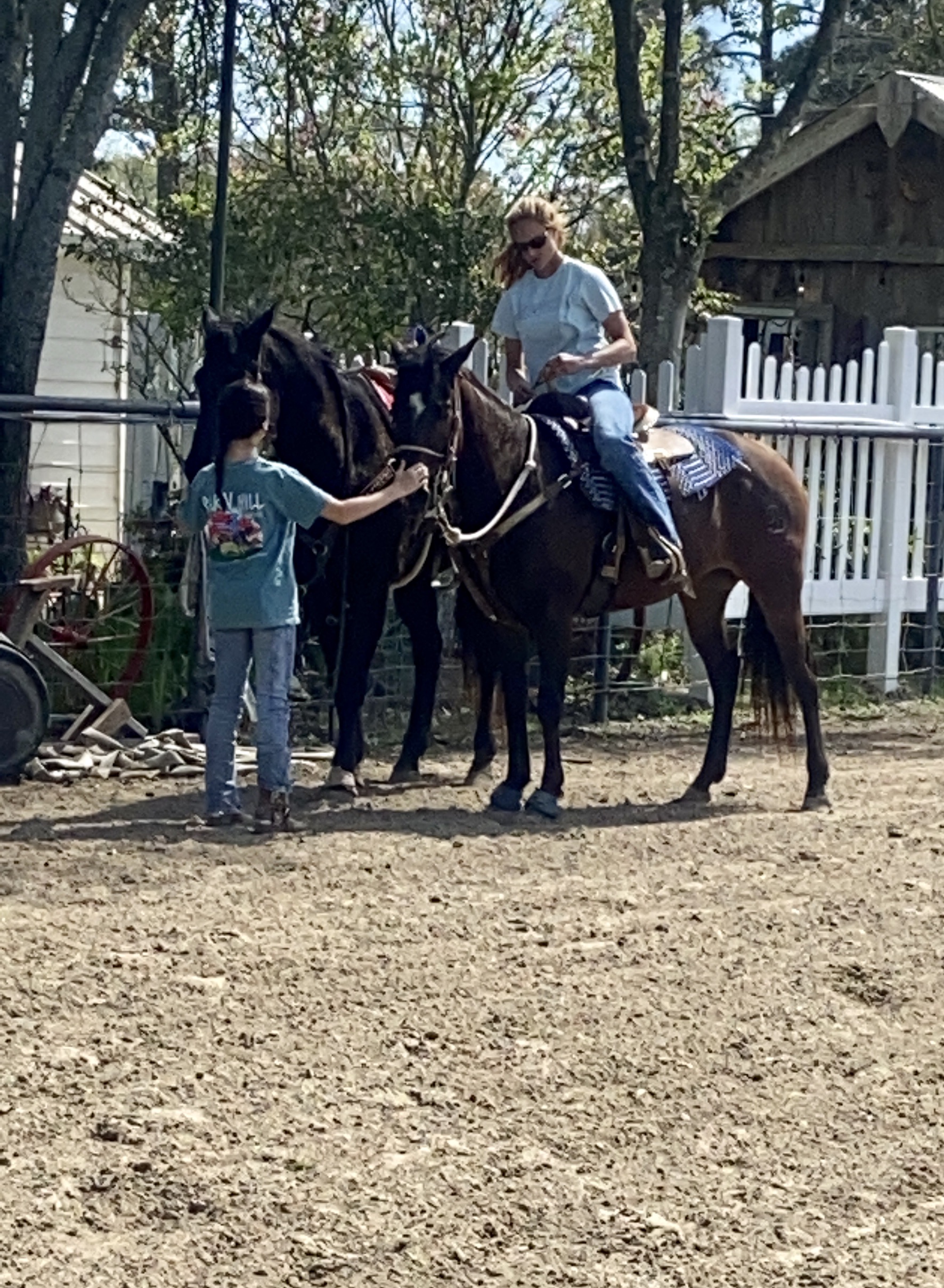 We love Sarah. She is a seasoned horsewoman. She has amazing skills as a trainer, a barrel racer, and a coach. Landry’s horse (Trouble) was giving her a bit of trouble, so Sarah took her for a spin to correct her. She’s fearless, firm, and fair with the horses. Her horsemanship skills are outstanding.
