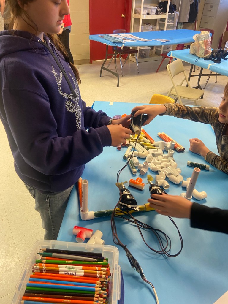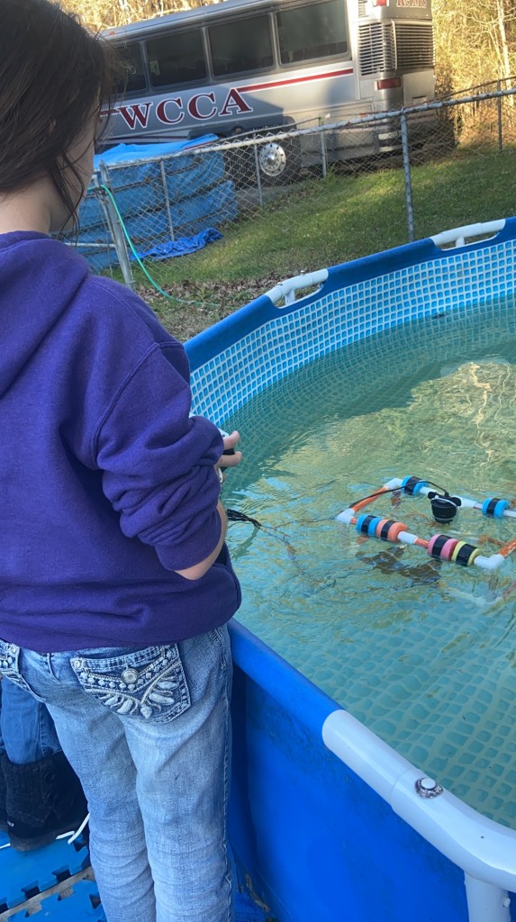 As soon as we got back home, we unloaded the horse, changed vehicles, and headed to a robotics session. Dauphin Island Sea Lab in Alabama came to give a hands-on demonstration of remotely operated vehicles (ROV). They supplied materials for the students to build their own underwater robotic vehicles. There is a contest coming up there in April.
