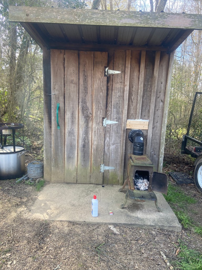 Today we are setting up the smoker after a winter of sitting idle. We have pork bellies to smoke to make bacon from the show season.