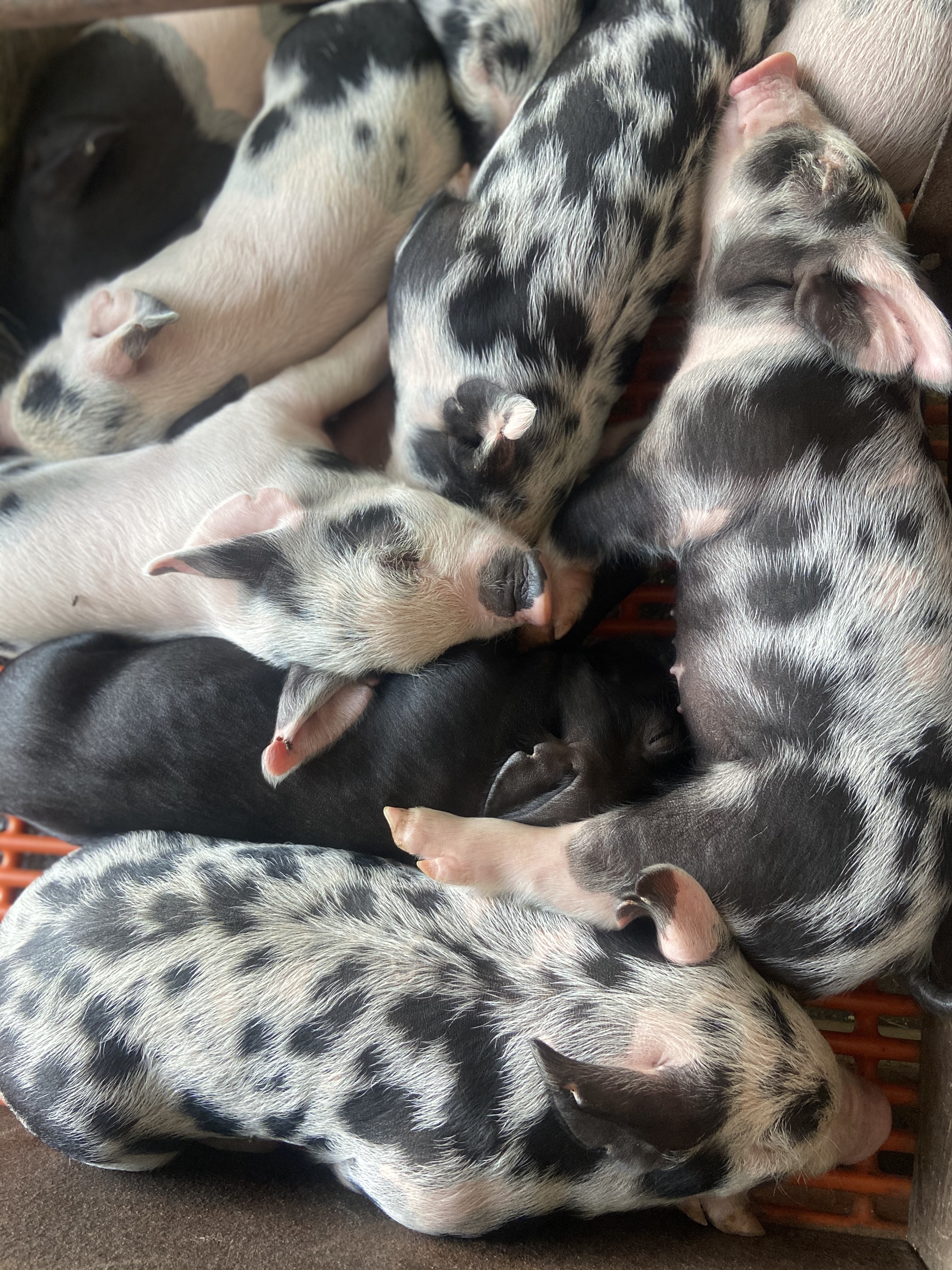 The garden is blooming, the piglets are growing, the calves are growing, and spring is here.