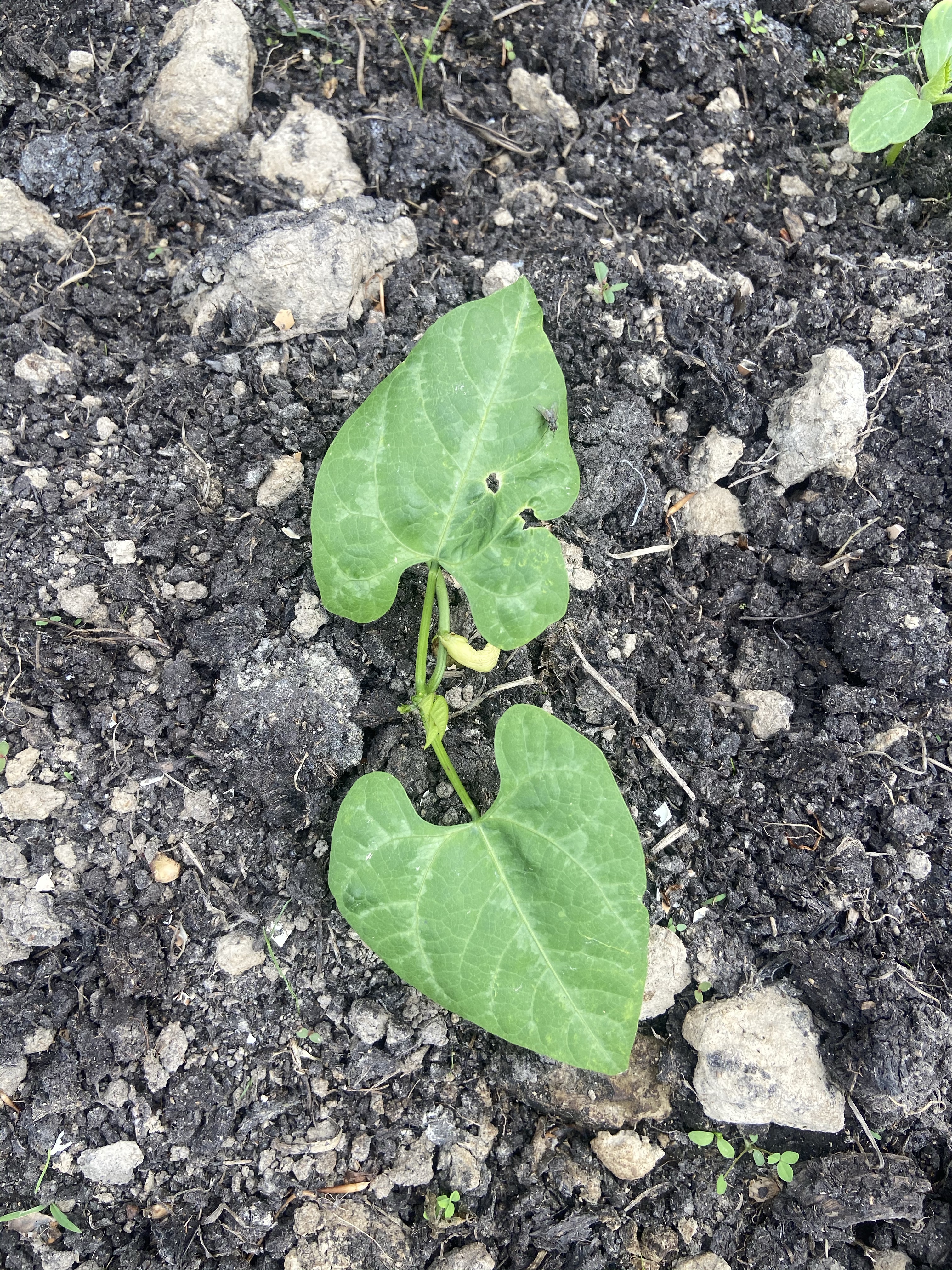Our okra did not do well. Only two plants sprouted. It may be that the weather got cool again. Okra is of African origin, so it likes the heat.