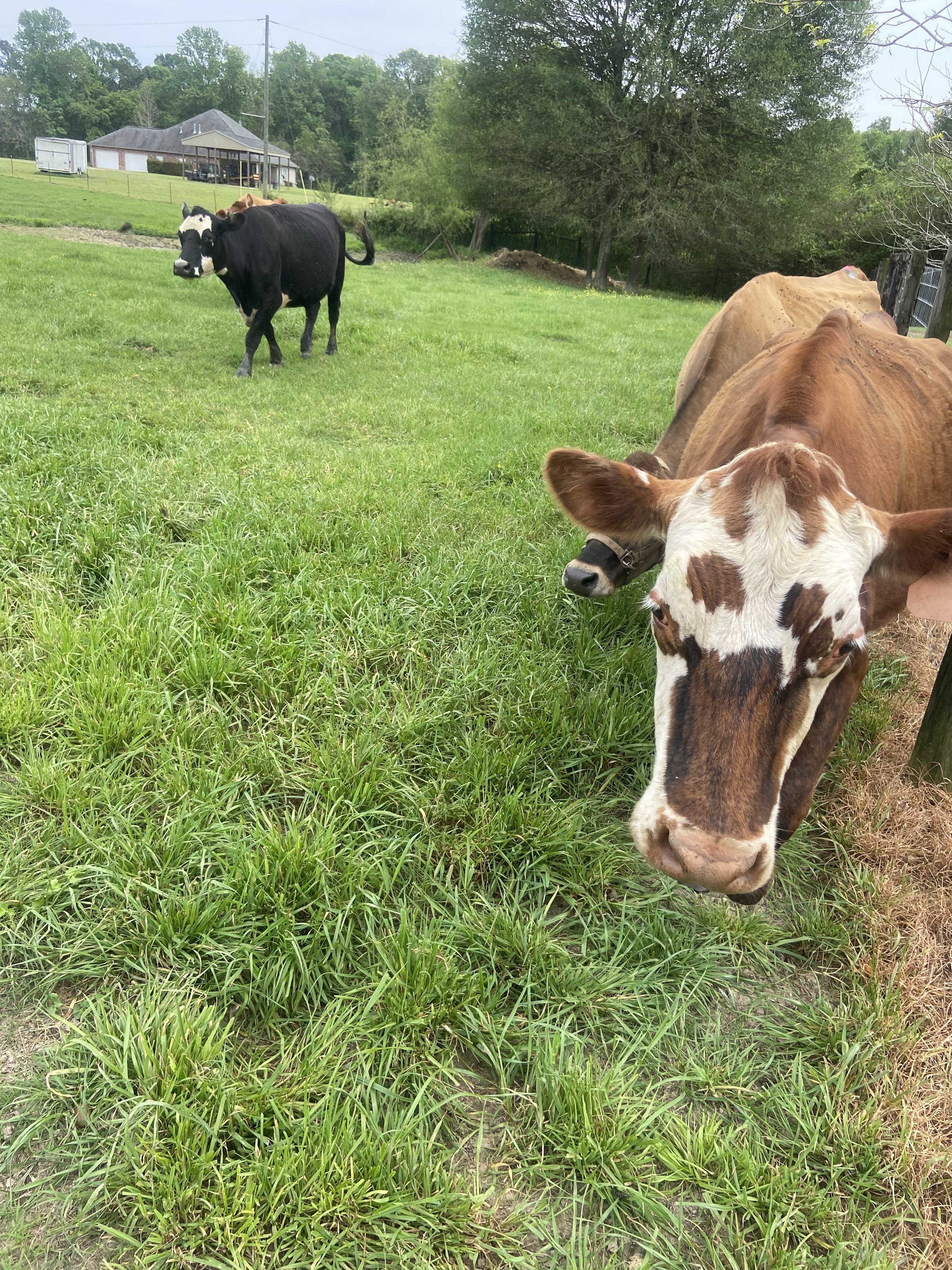 The front pond is empty, so the cows go over in that pasture to graze, then they call for us to come let them back into the other pasture.