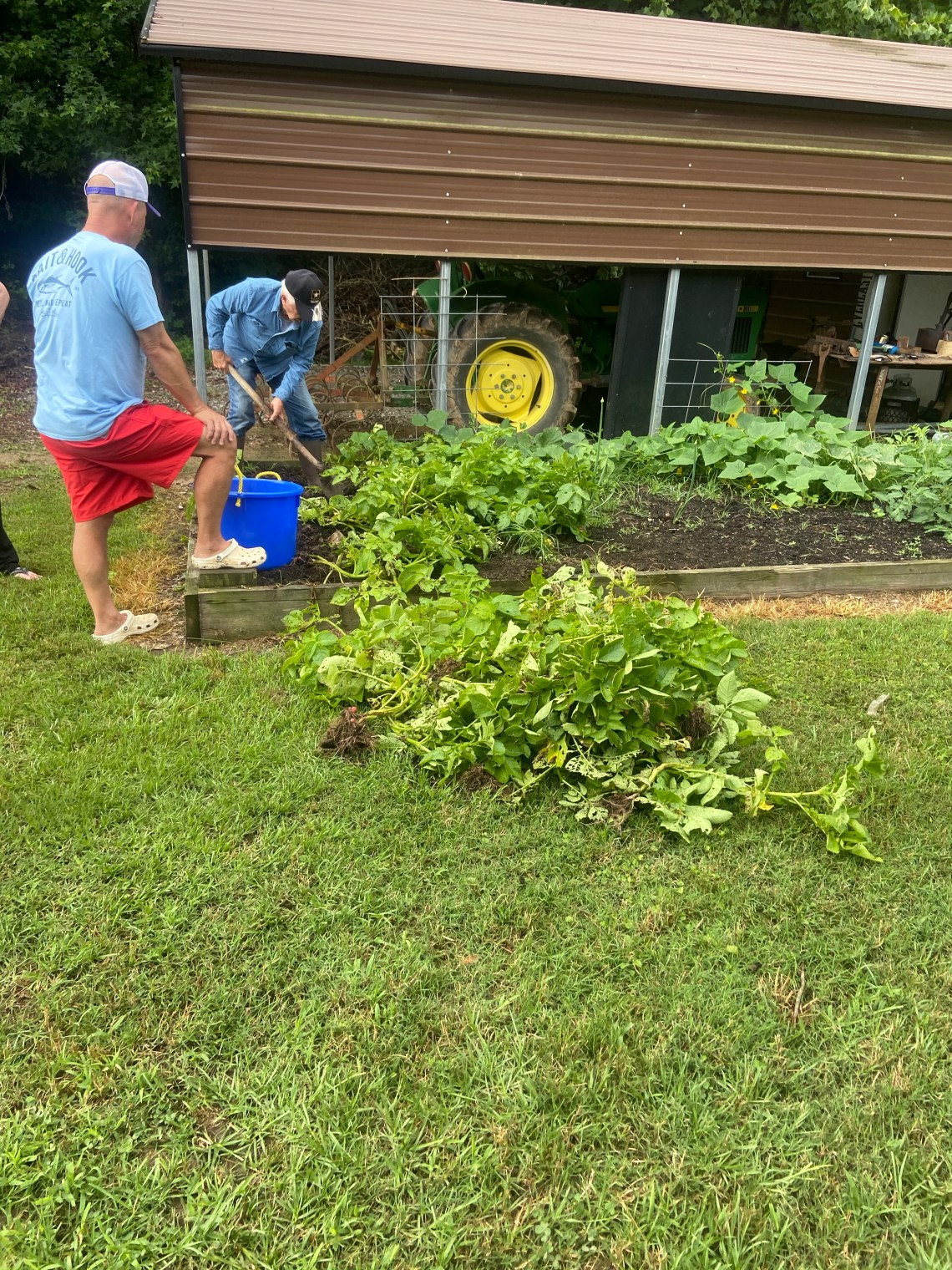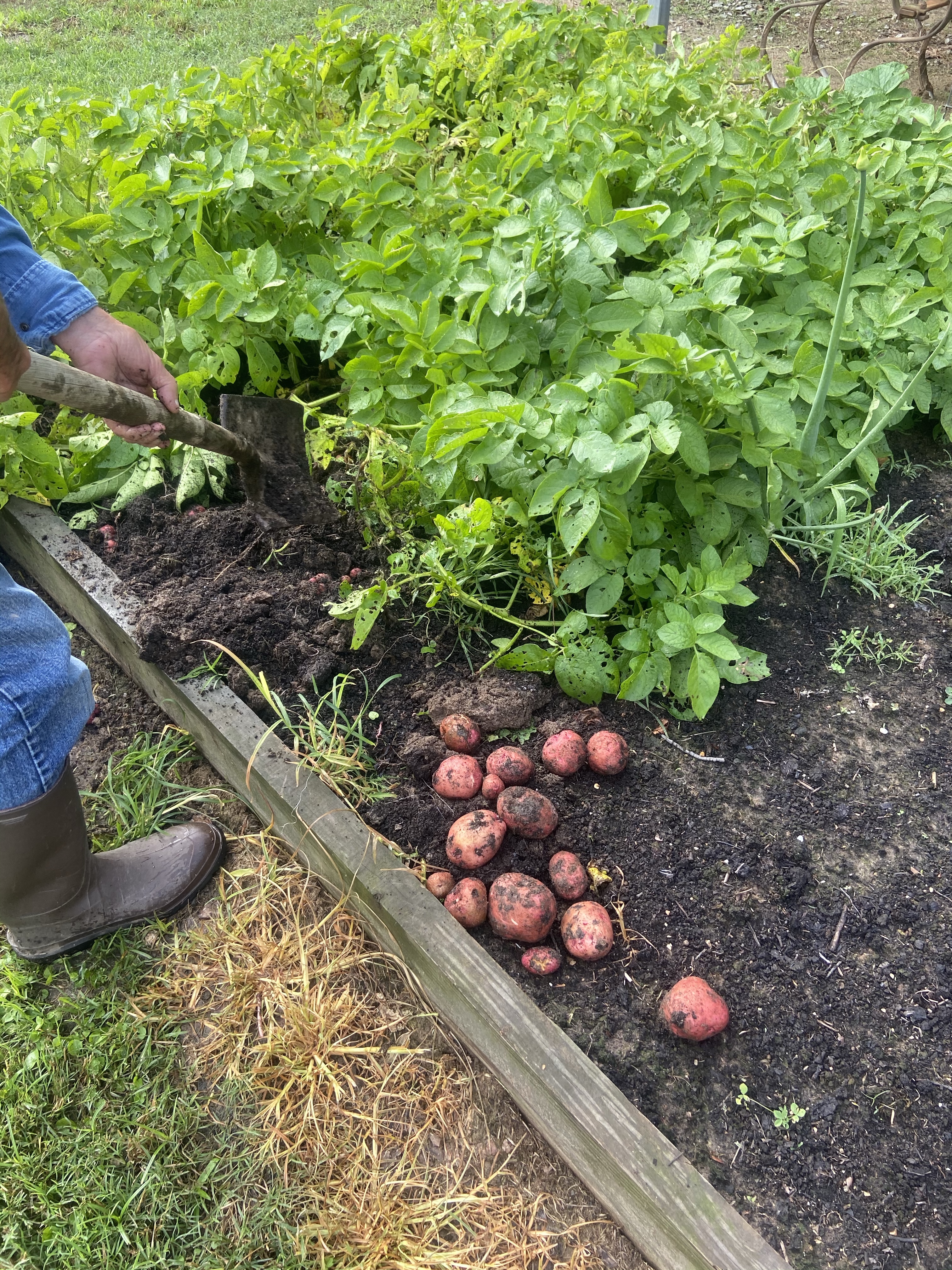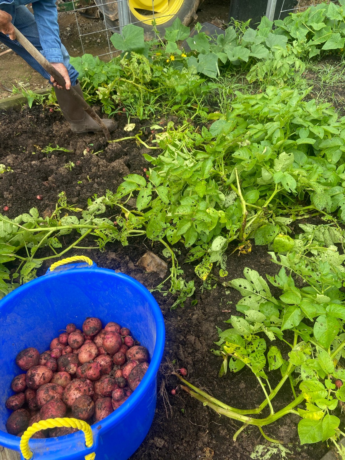 We harvested potatoes today.