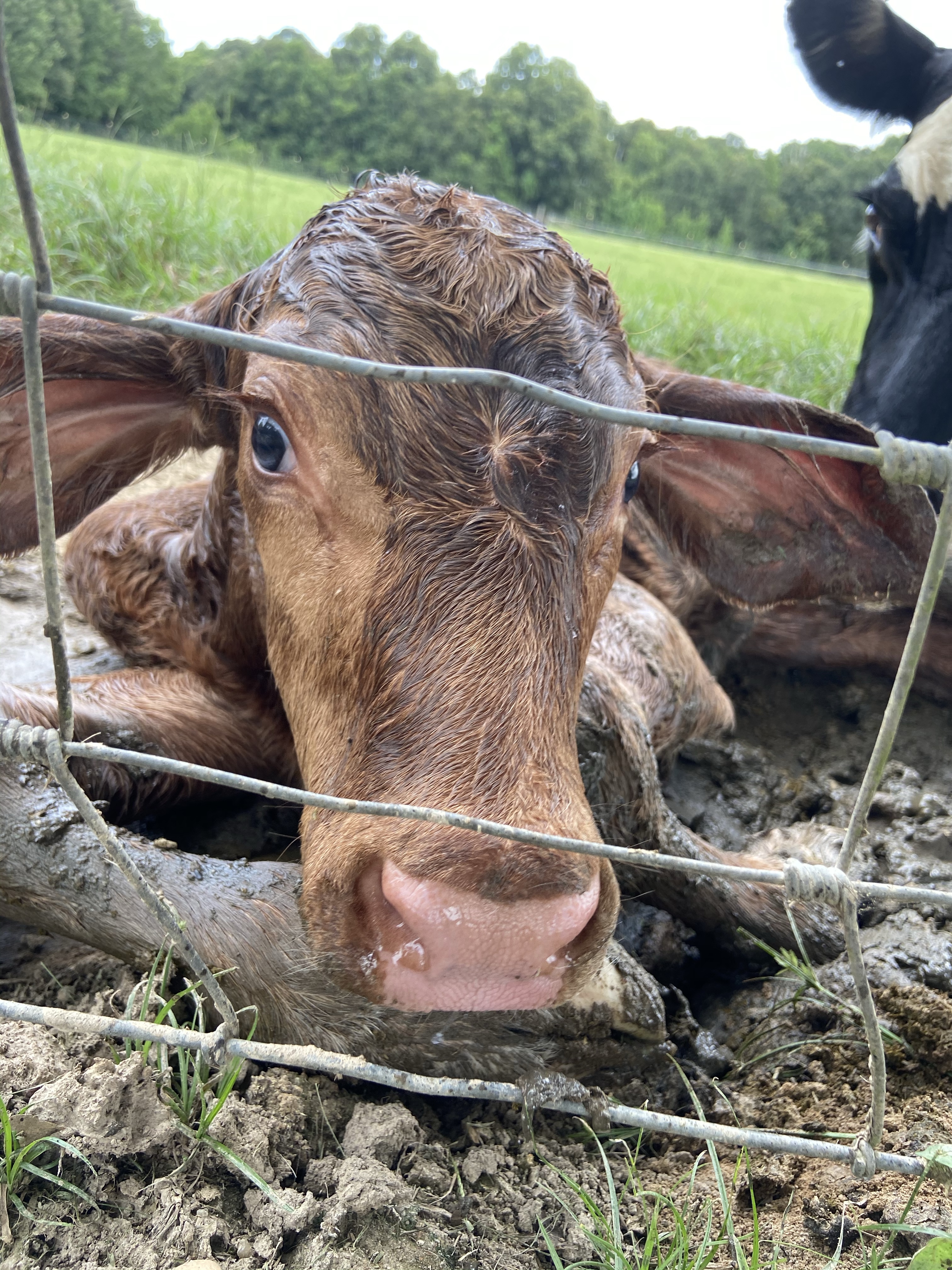 My daughter wanted to show this calf in 4-H as a commercial heifer. However, it is a bull. We may decide to keep him intact and use him as a herd bull.