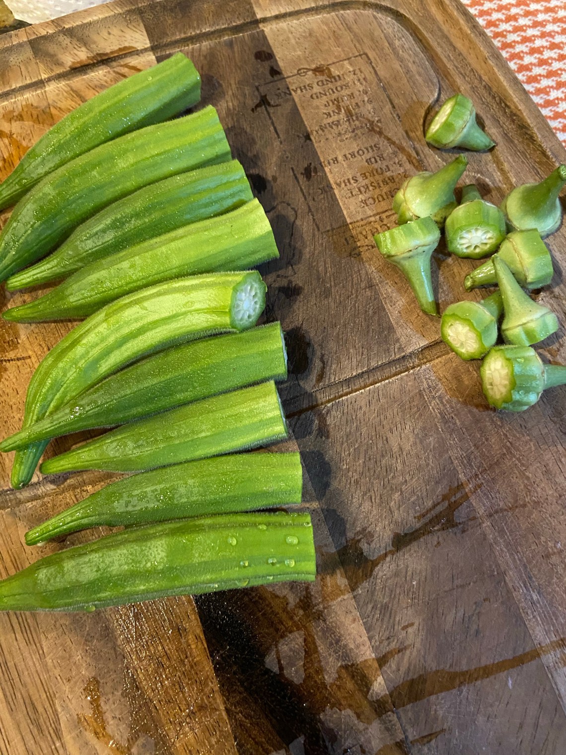 I slice them up. Thinner slices for bigger okra, thicker slices for smaller okra.