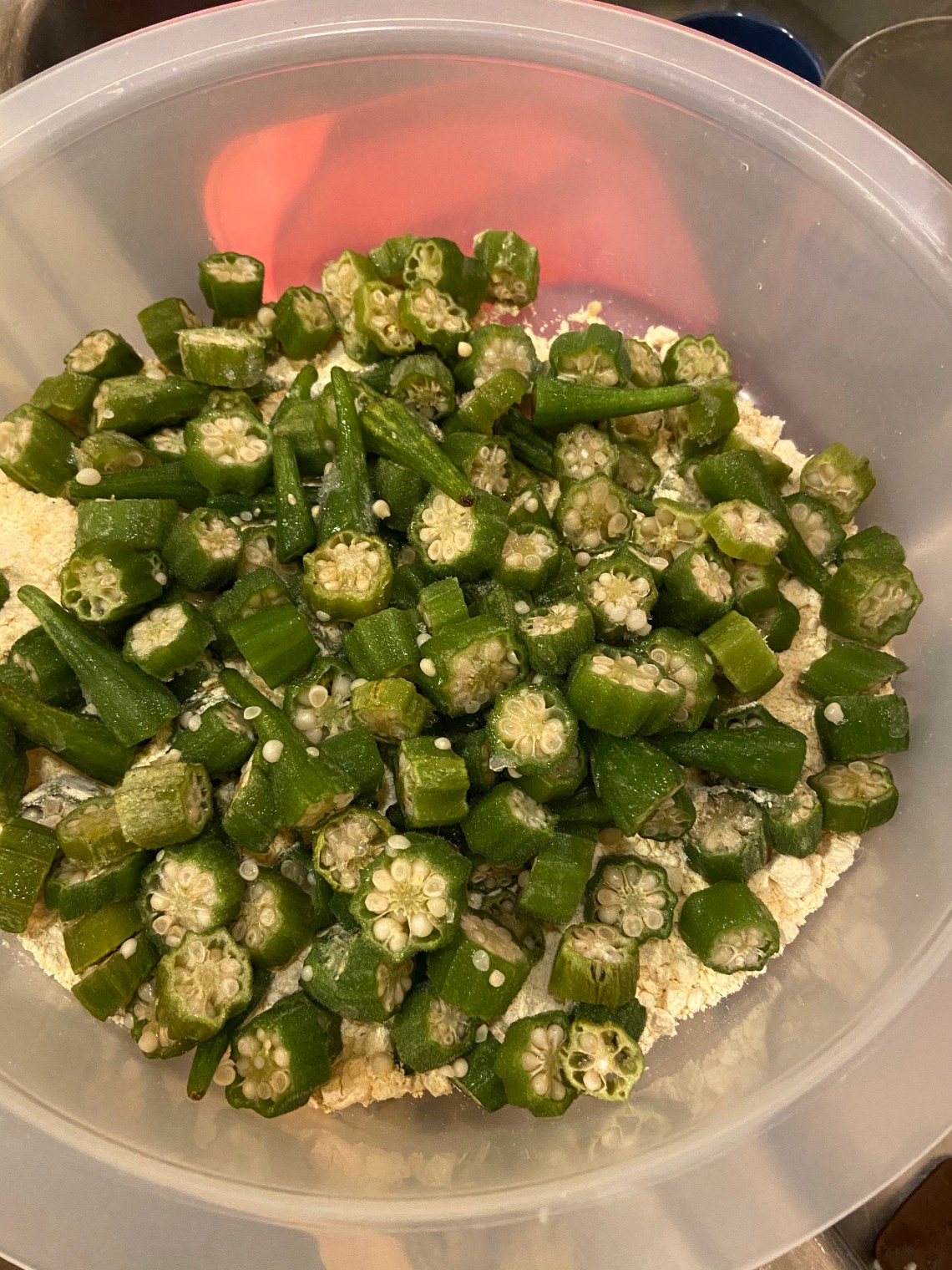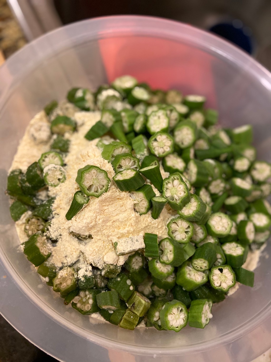 In Louisiana, you will find okra pickled, fried, and tossed into a pot of gumbo. Tonight I fried a big batch.