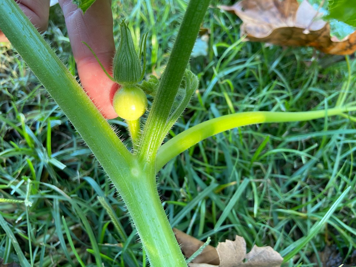 Our pumpkin patch is growing like crazy.
