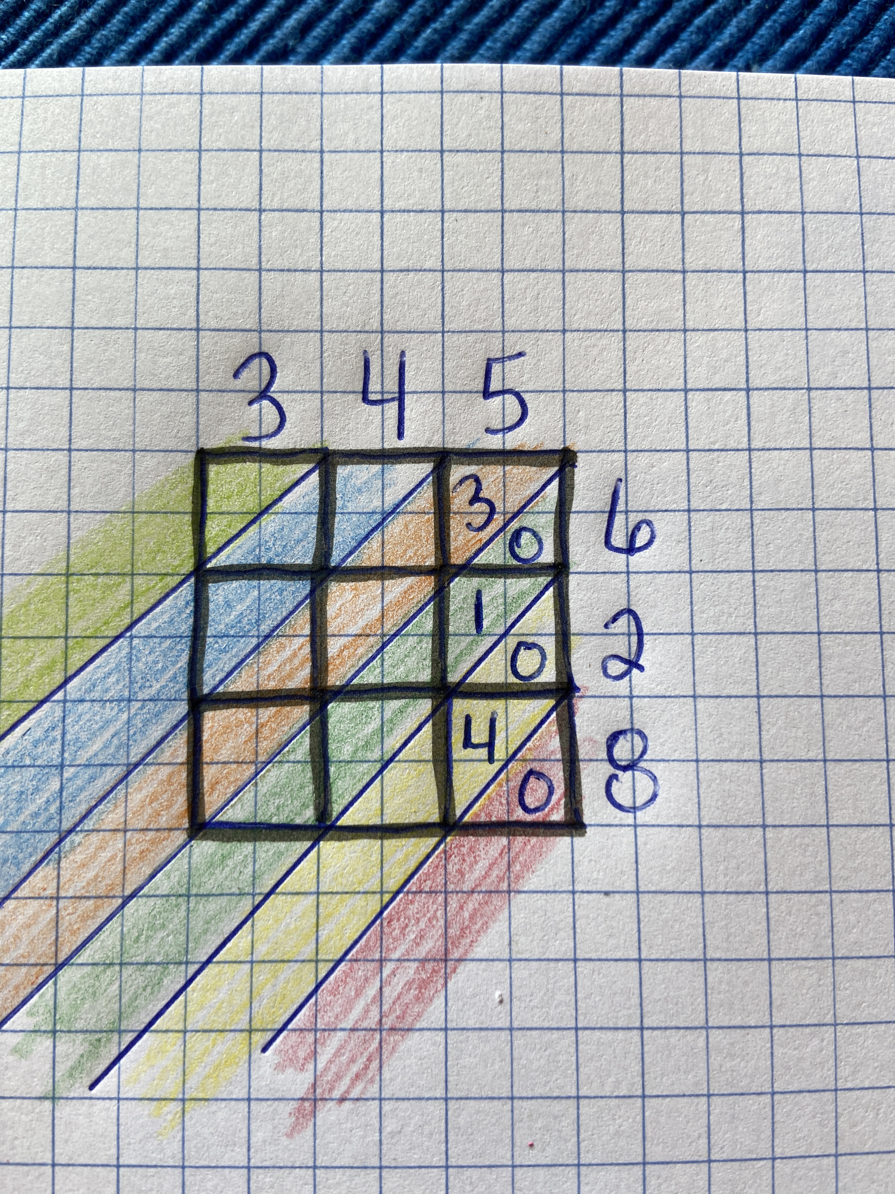 He couldn’t keep the numbers lined up. We switched to graph paper. It helped but wasn’t the golden ticket.