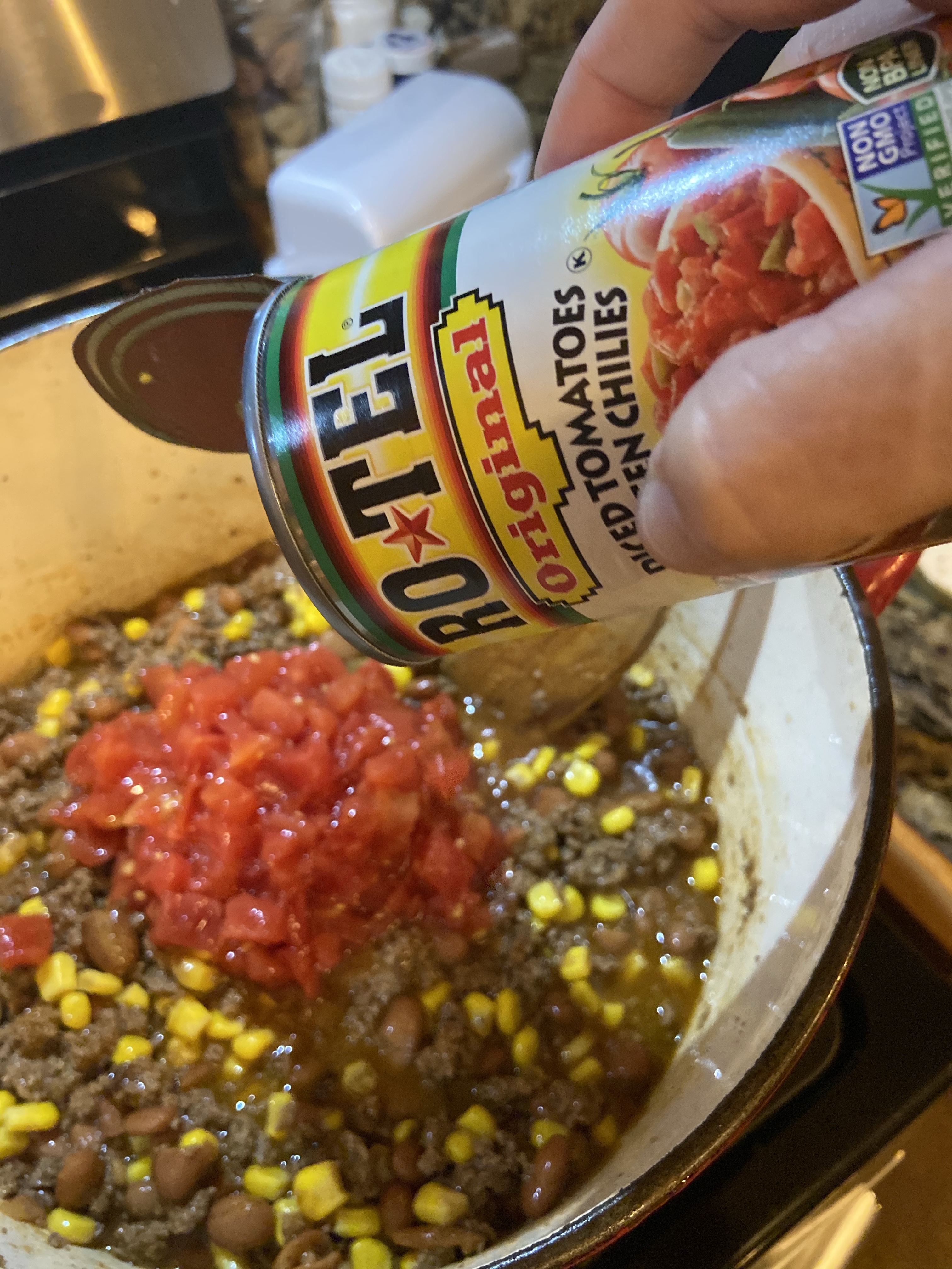 Add your Rotel and tomato sauce.