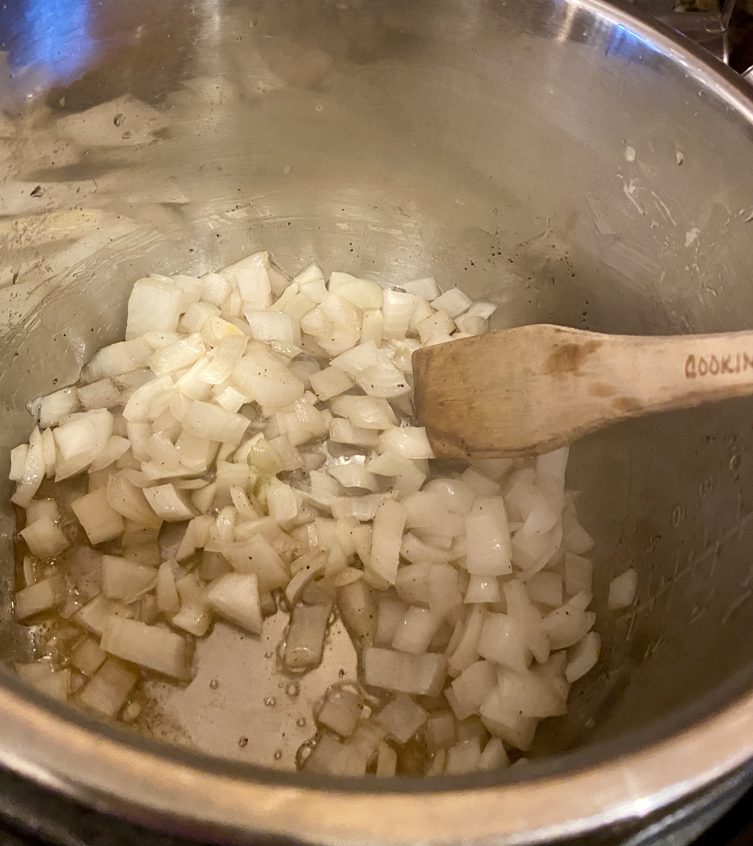 Once your grease is hot, add your diced onion and cook until it starts to soften and turn translucent.