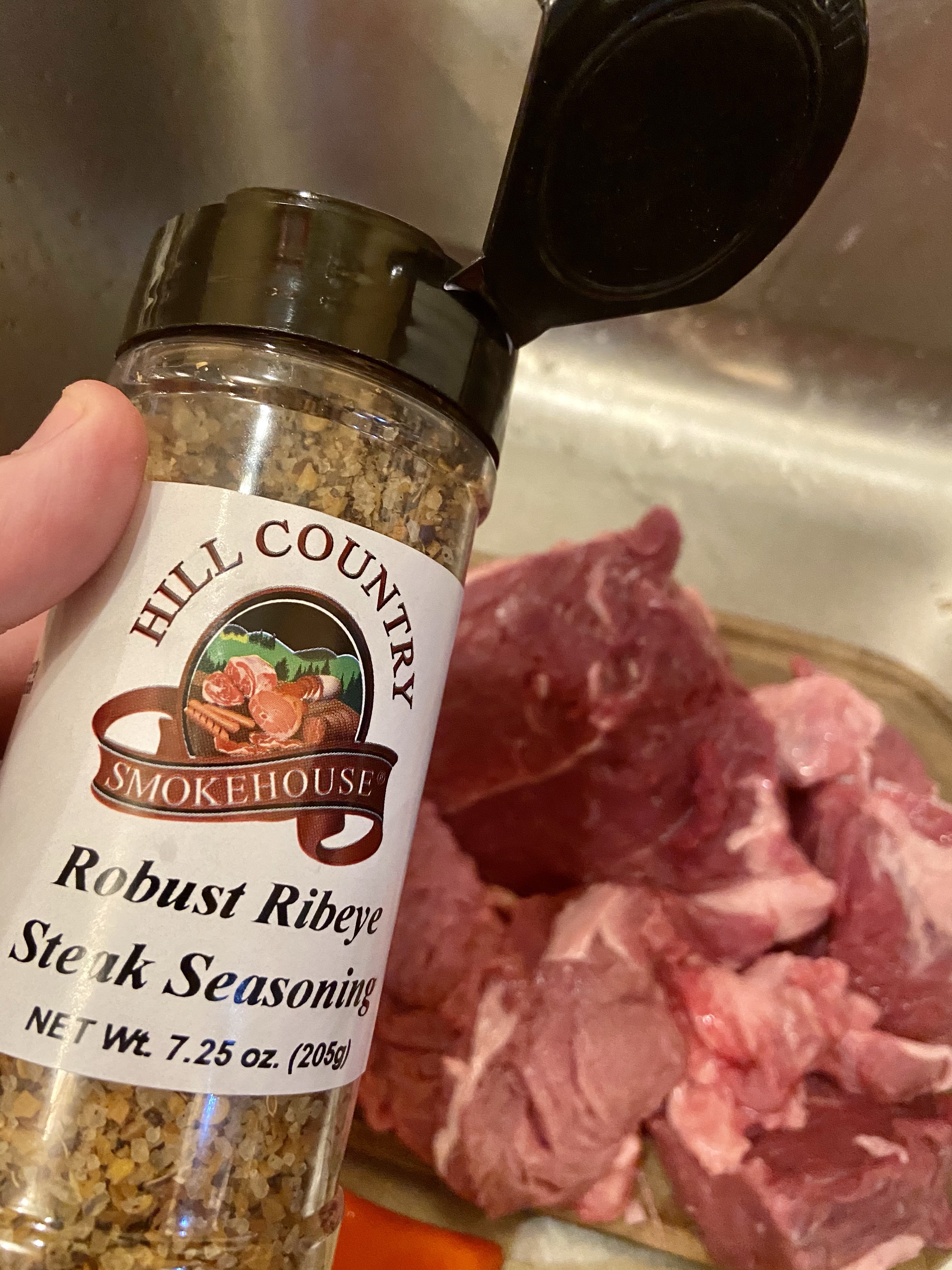 The seasoning is primarily salt, black pepper, and garlic. Look for a steak type seasoning with the same primary ingredients.