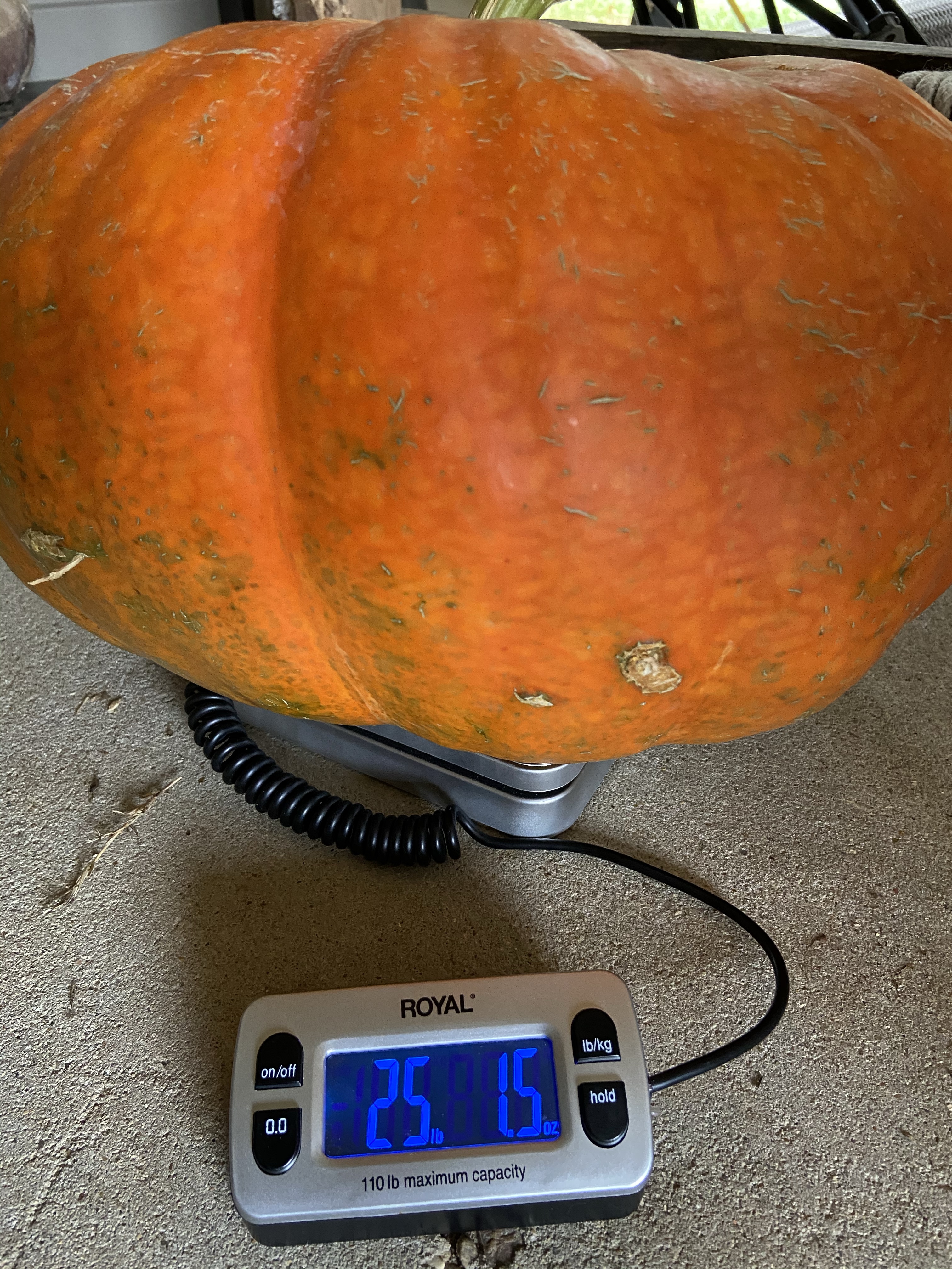 Landry will turn in her pumpkins to the 4-H office for judging next week. She has a big beautiful one, but something chewed on it and now it has a hole. Holes in pumpkins mold.