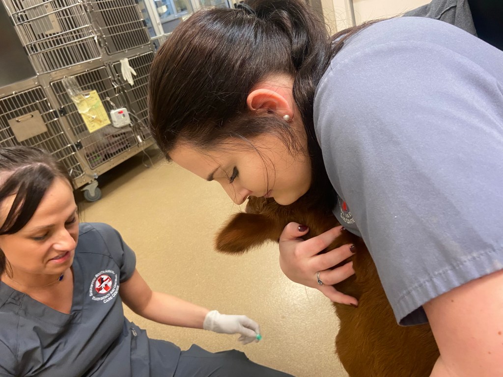 They are the ones snuggling patients following a surgery, hand feeding pets to be sure they are eating (to the point of sharing their own food), monitoring IV lines, brushing, petting, and simply caring for every need.