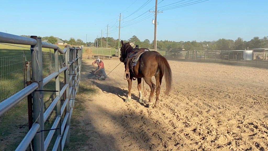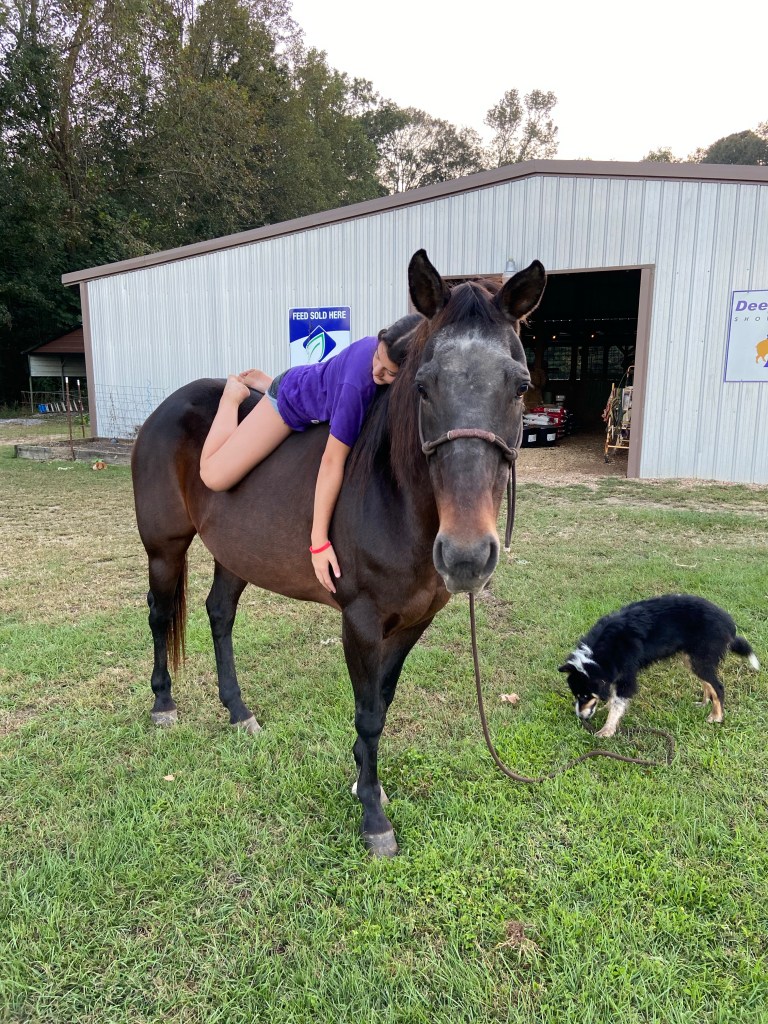 Then I laughed. His seat wasn’t solid, and he was leaning side to side as she walked. She was simply staying under him. He would lean, and she would get back under him. That’s the blessing of an older horse. They teach beginners how to ride.