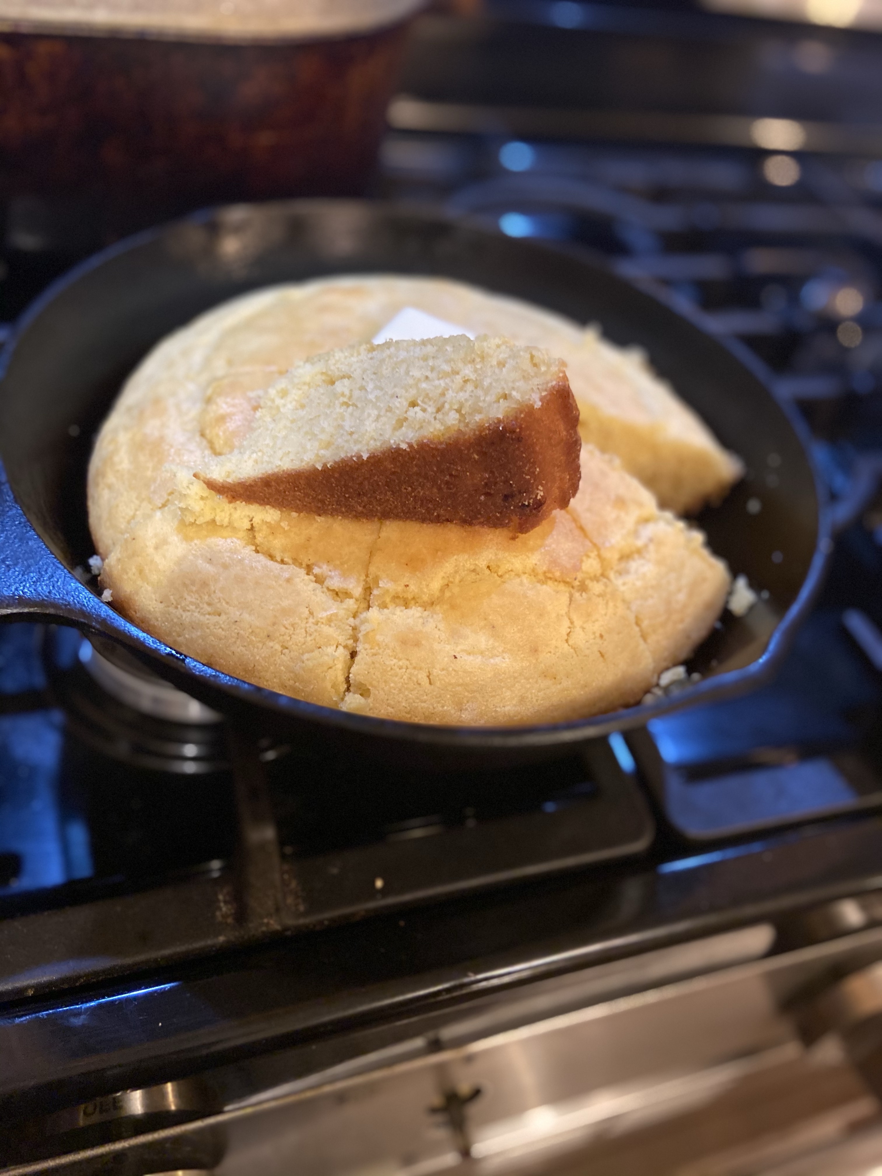 Slice and serve! It’s best with a gravy to dip. We love cornbread with red beans or roast with gravy.