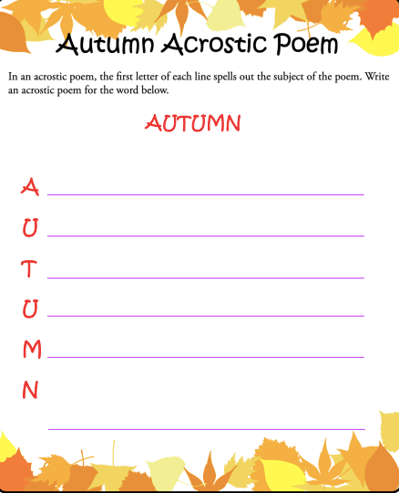 Today I am using a sentence diagramming worksheet – and there is one to simply explain diagramming WITH all the answers given for you, an autumn acrostic worksheet, and a narrative voice worksheet.