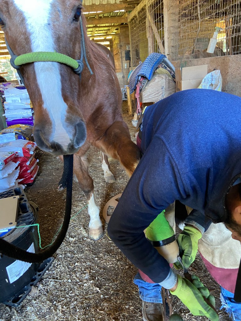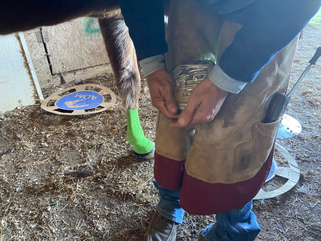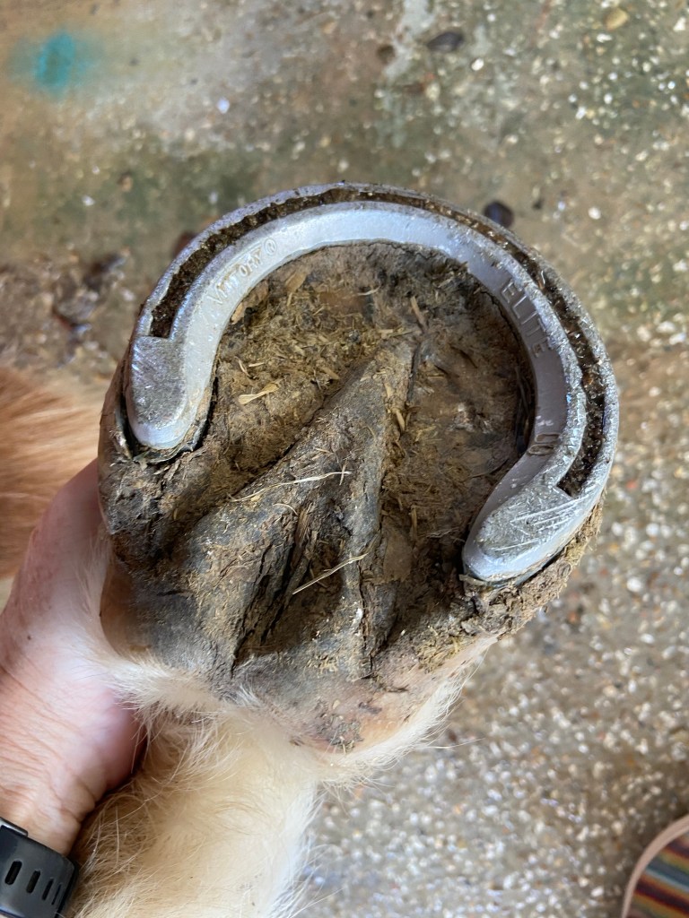 I was speaking with another veterinarian about glue on shoes. This horse needs a round of shoes without nails.