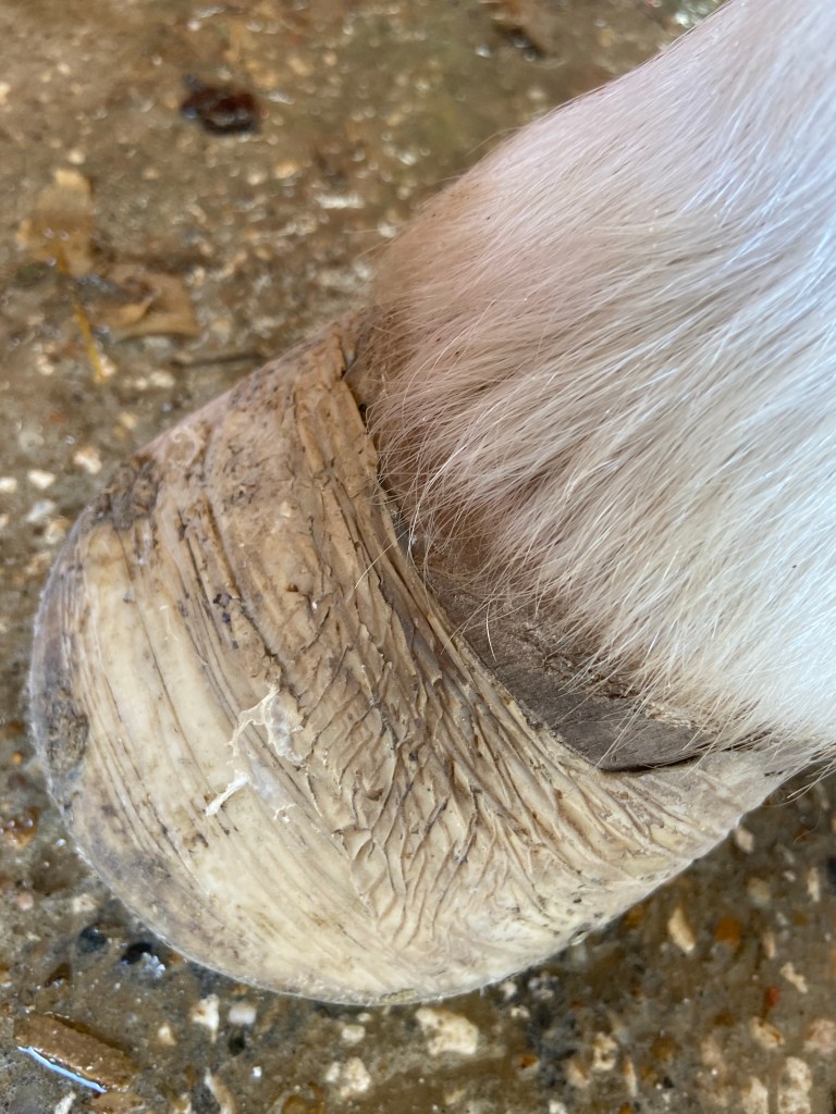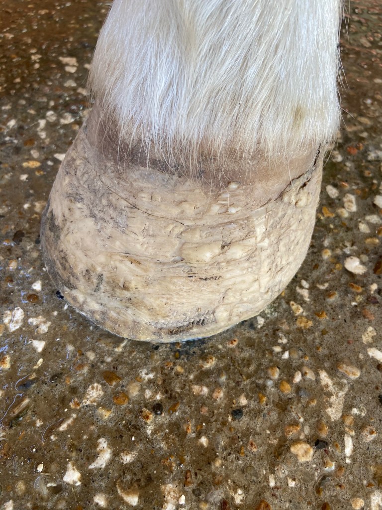 We have a 20 year old roping horse (named Greg) that has brittle feet. He is on pergolide for Cushing’s disease. Cushing’s is a disorder of the pituitary gland in the brain. It causes an increased production of immune suppression hormones.