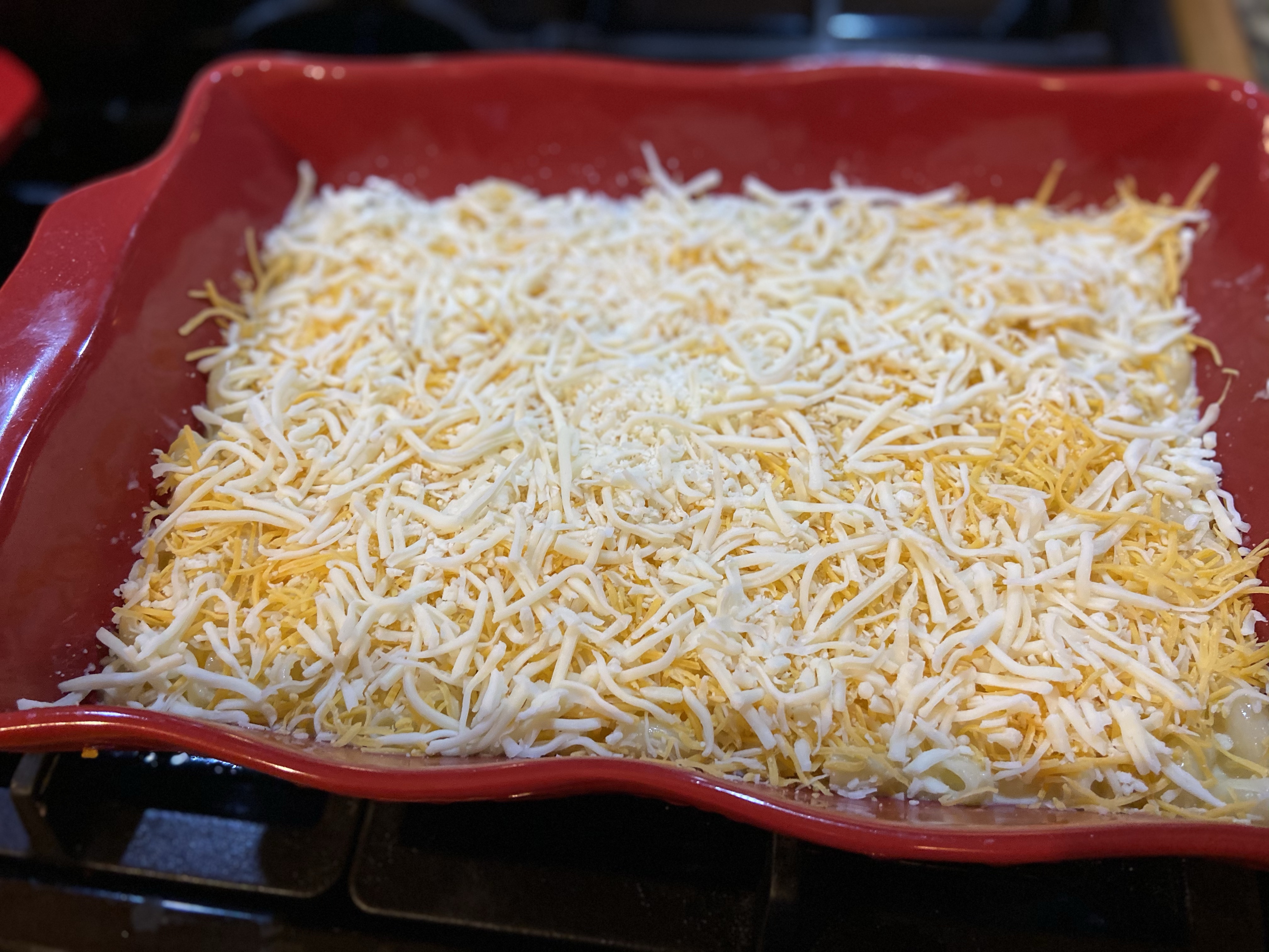 Mix 3 cups of various shredded cheese into the mix.