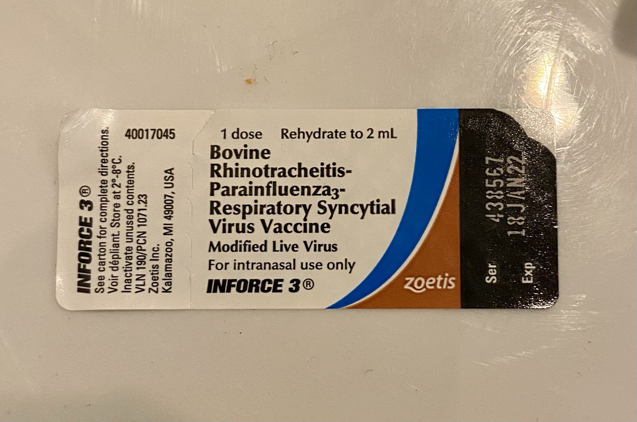 We use Inforce 3 intranasal respiratory vaccine. It is a live vaccine that builds quick immunity. We use it in herd outbreaks.