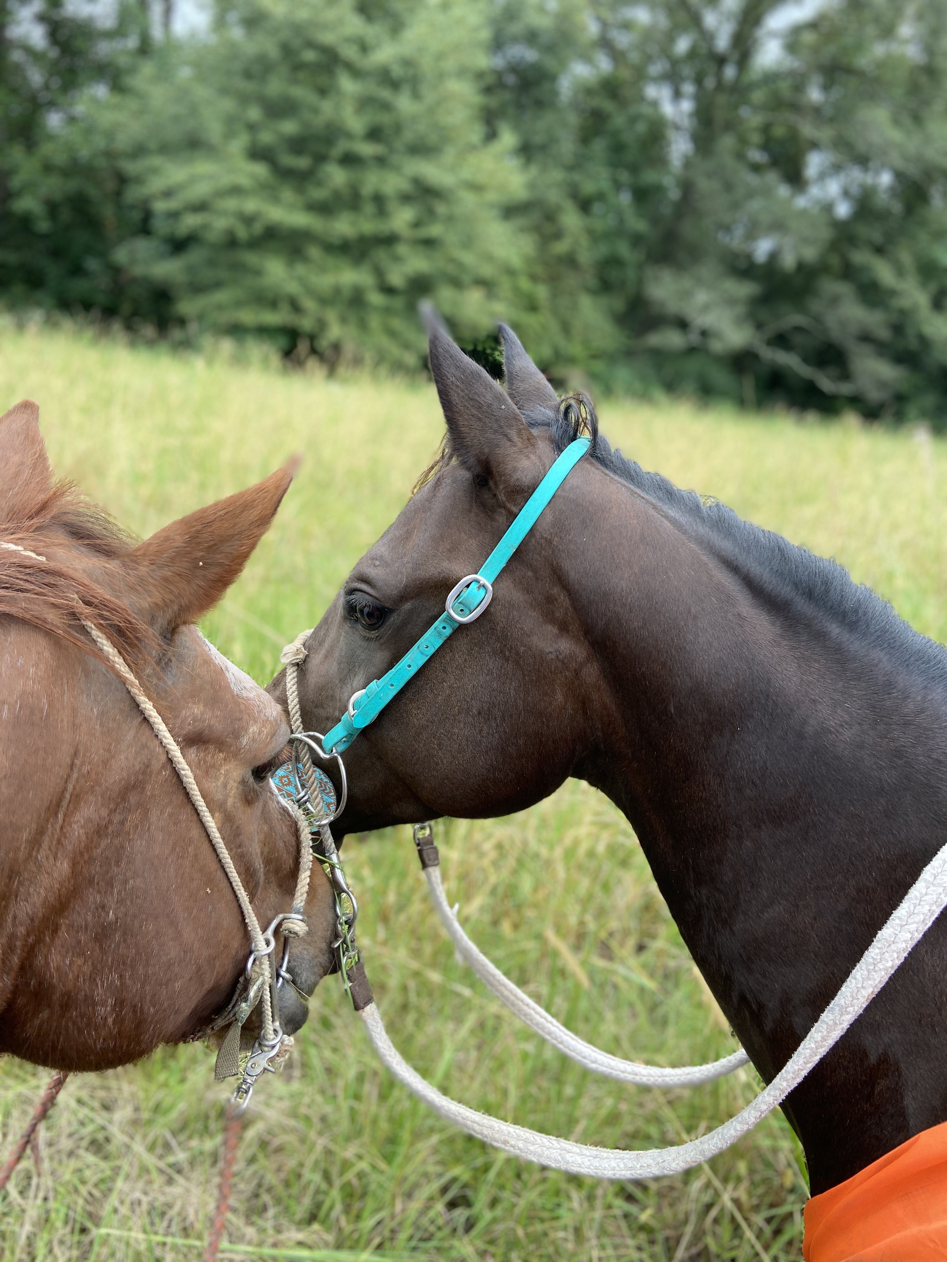 Landry and I are at a barrel race with her young horse, Trouble. They are working and growing together.