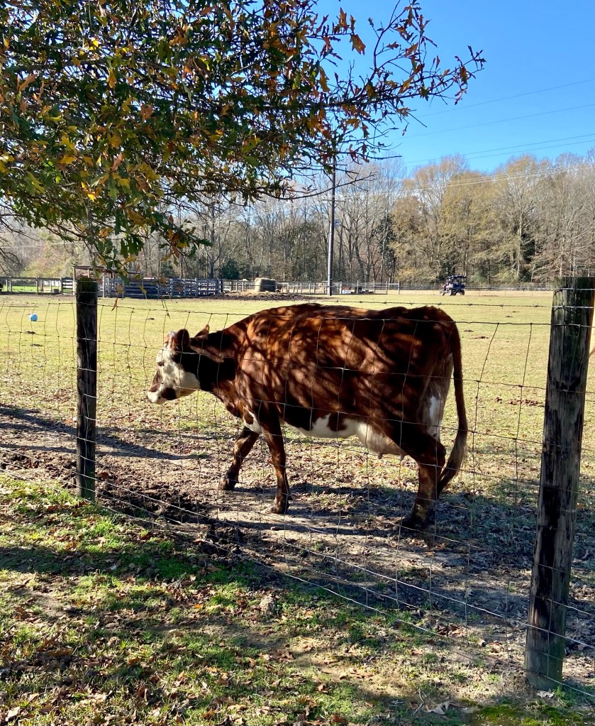 She was bred by artificial insemination to a Braford (half Brahman, half Hereford) bull. Her due date was Dec 31, 2020. Cows normal gestation length is about 283 days.