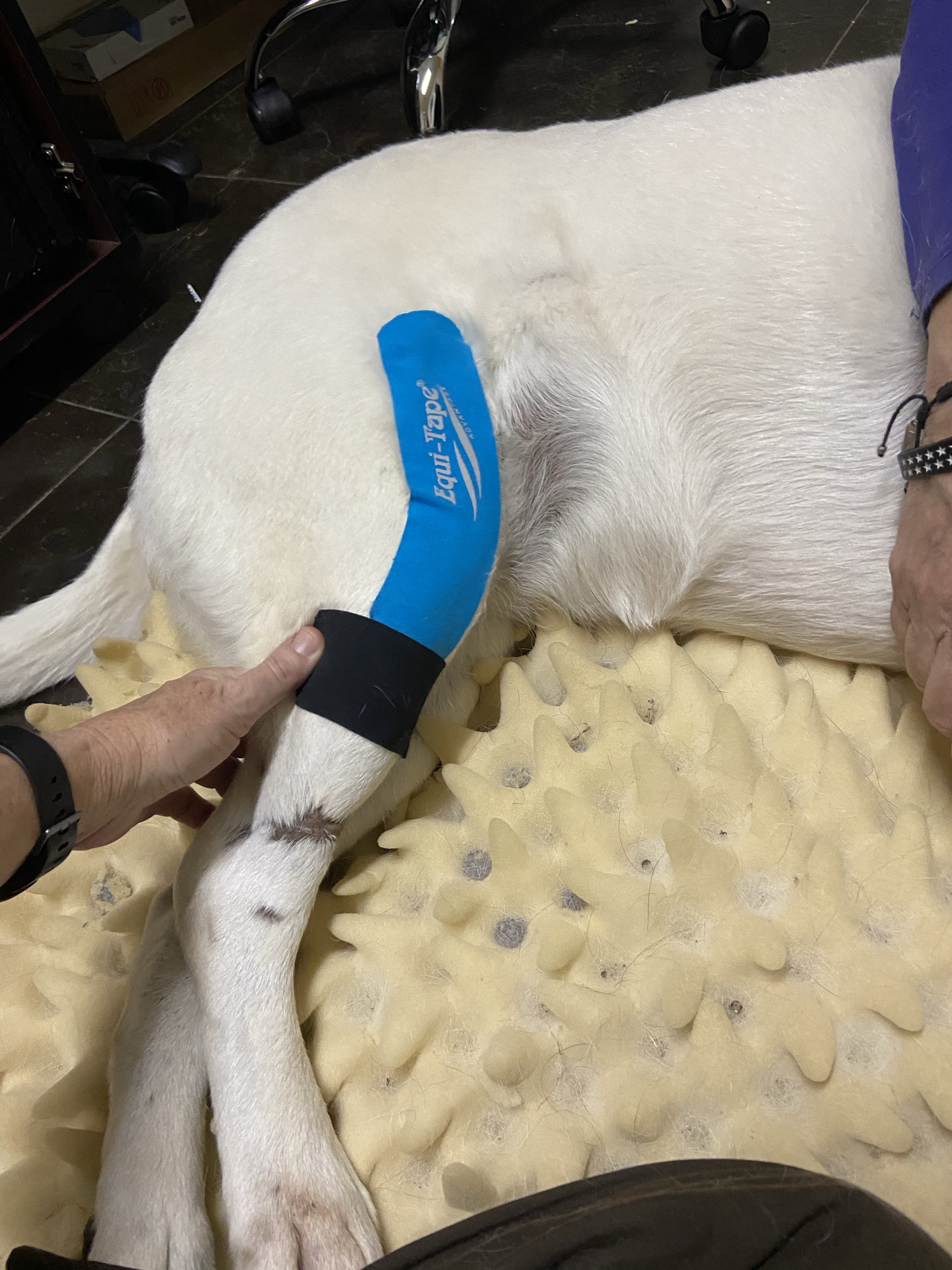 Today, we have kinesiology tape specifically made for horses. It’s specially made to adhere to hair. As a veterinarian who does the work of a dog chiropractor, I use this tape often.