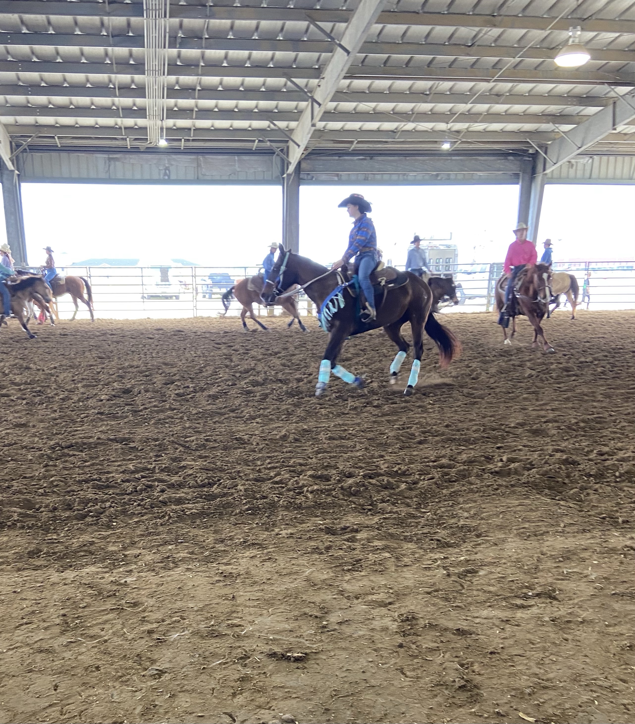 We are at a high school rodeo. My daughter is a teen and riding a young horse.